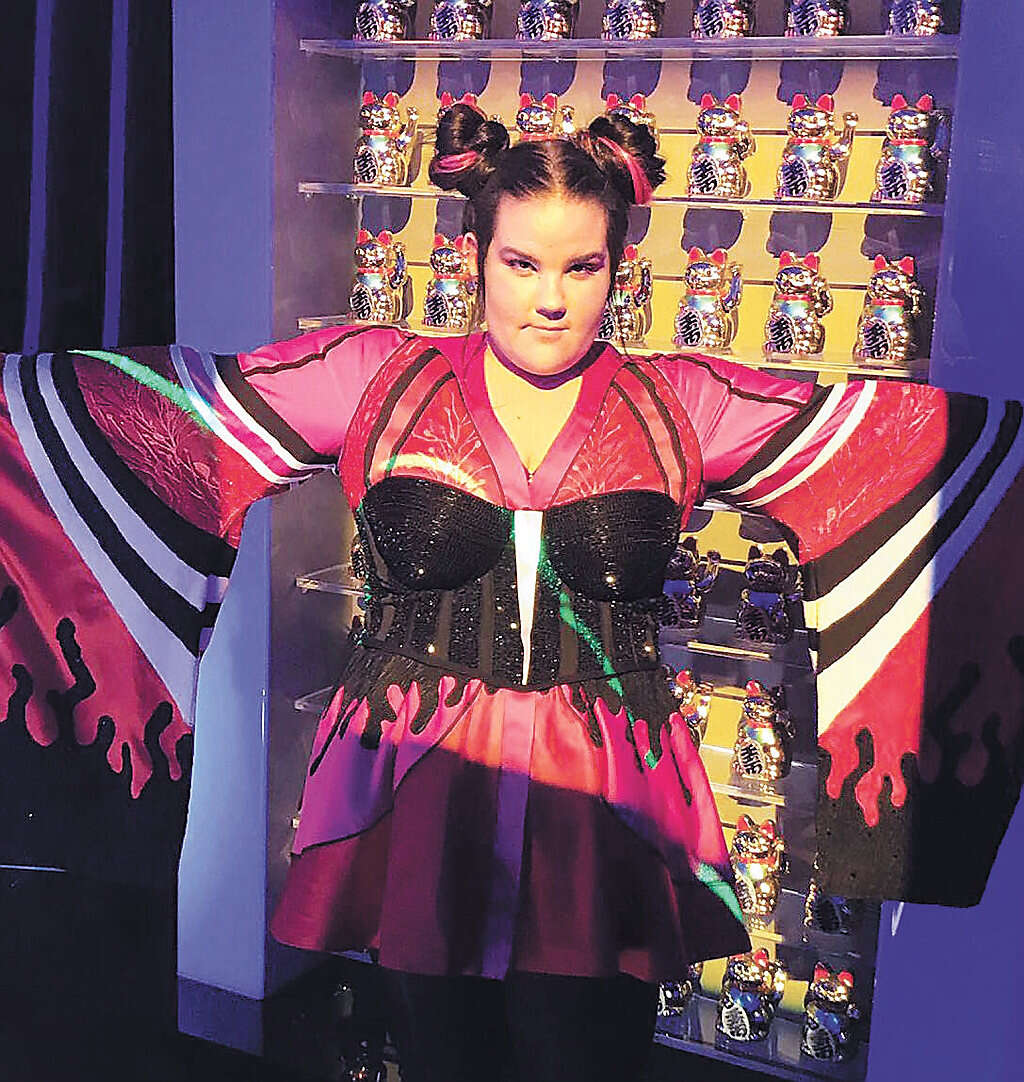 מי: הזמרת ליאורה שרה את השיר "אמן", והגיעה למקום השמיני והמכובד. גם את השמלה שלה עיצב ירון מינקובסקי. "הבגד של ליאורה היה חלק מתוך הקולקציה האייקונית 'ירושלים של זהב' שעיצבתי לגוטקס. יש בבגד שימוש באלמנטים של יודיקה, מוטיבים מתוך המסורת היהודית מרוקעים על מתכות מצופים זהב בשילוב אבני טורקיז על רקע לבן", מספר המעצב.
