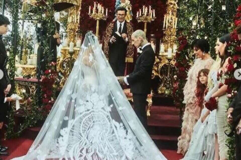 החתן לבש חליפת טוקסידו שחורה מחויטת של דולצ'ה וגבאנה שהחמיאה לו מאוד. למרות שכבר הייתה בזוגיות רבת שנים עם סקוט דיסיק ויחד איתו יש לה שלושה ילדים, זו הפעם הראשונה שקורטני קרדשיאן כלה, ועל פי הראיון שלה בערוץ HULU, היא לא חשבה שאי פעם תהיה כלה עד שפגשה את טראוויס בארקר, ששינה את עולמה.