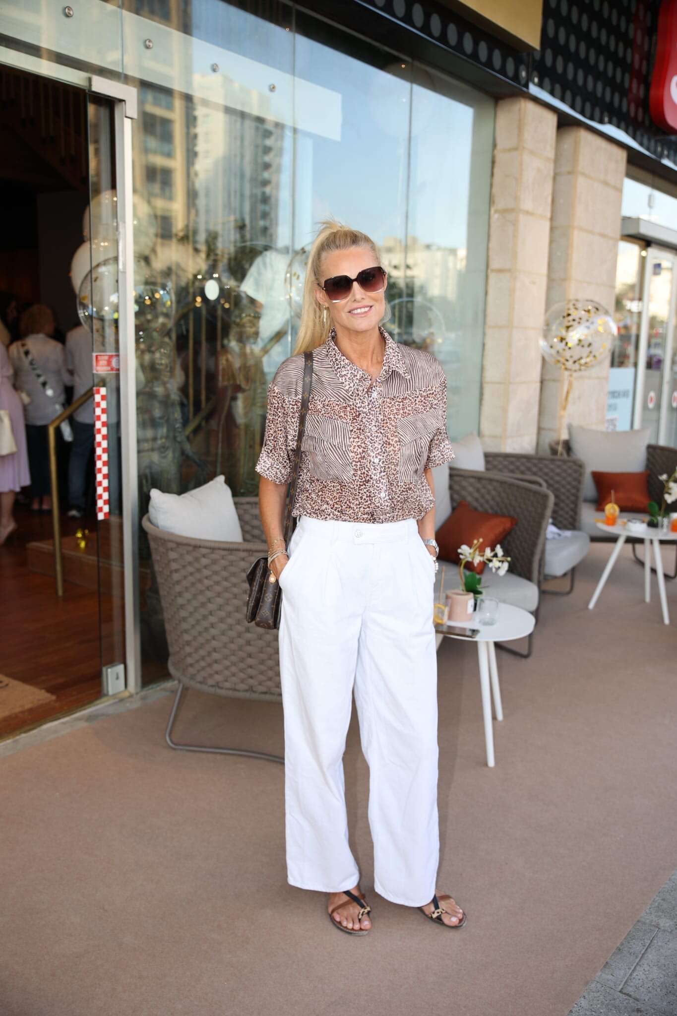 אשת העסקים שלי גפני נראית אלגנטית כהרגלה. היא הגיעה במכנסיים לבנים מחויטים בגזרה רחבה בשילוב חולצה מכופתרת עם שילוב הדפסים של נמר וזברה, תיק צד חום של לואי ויטון וסנדלים בצבעוניות חומה. ללא ספק טוטאל לוק מהודק ובסטייל.