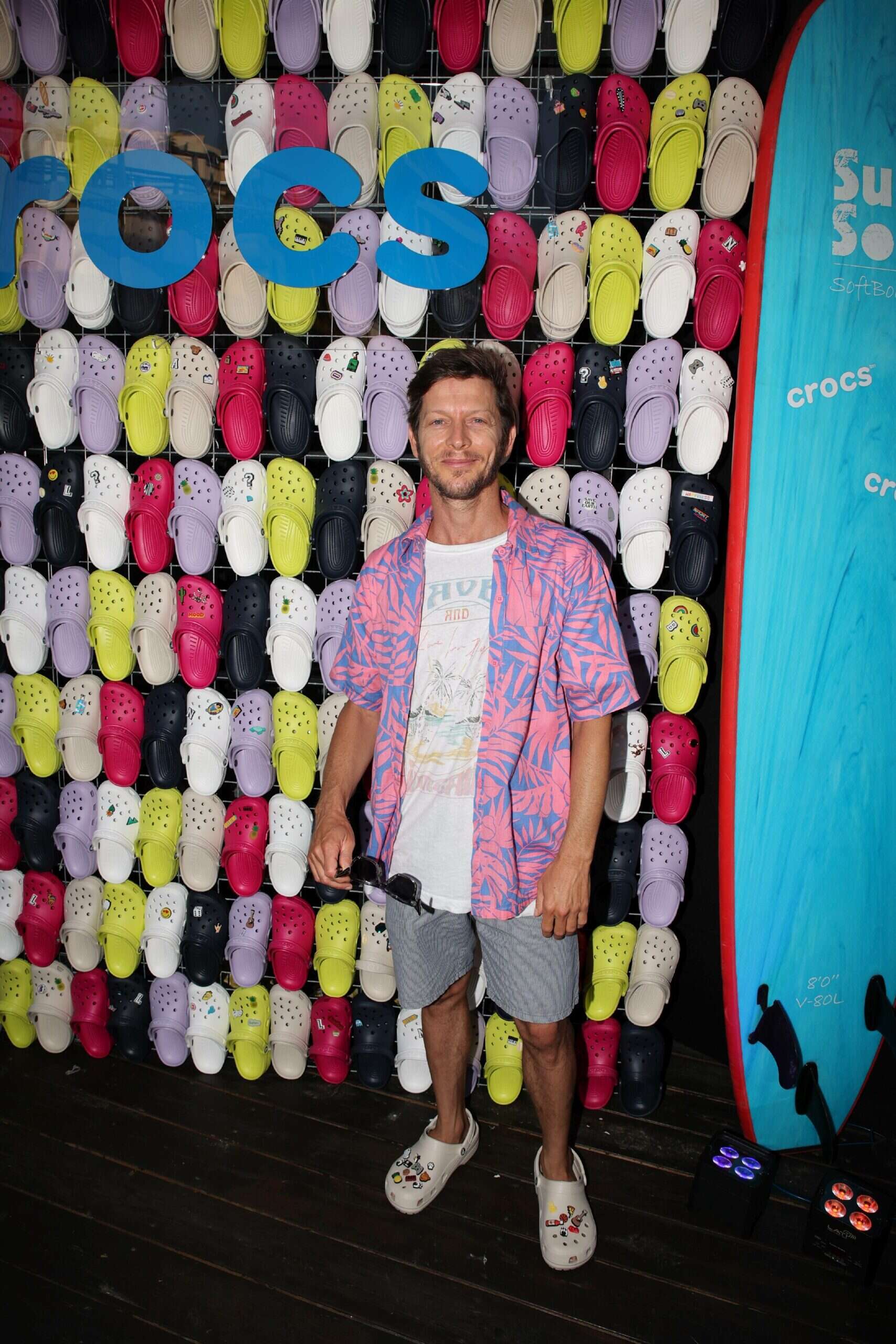 אהבנו מאוד גם את הצבעוניות של המאורס הטרי עופר שכטר, שהגיע ללא אשתו לעתיד. הוא לבש מכנסיים קצרים אפורים של בילבונג, חולצת טישרט לבנה עם הדפס דהוי של רוקסי, חולצה מכופתרת עם הדפס עלים בצבעוניות של ורוד וכחול פסטל של בילבונג וקרוקס לבנות עם פאצ'ים.