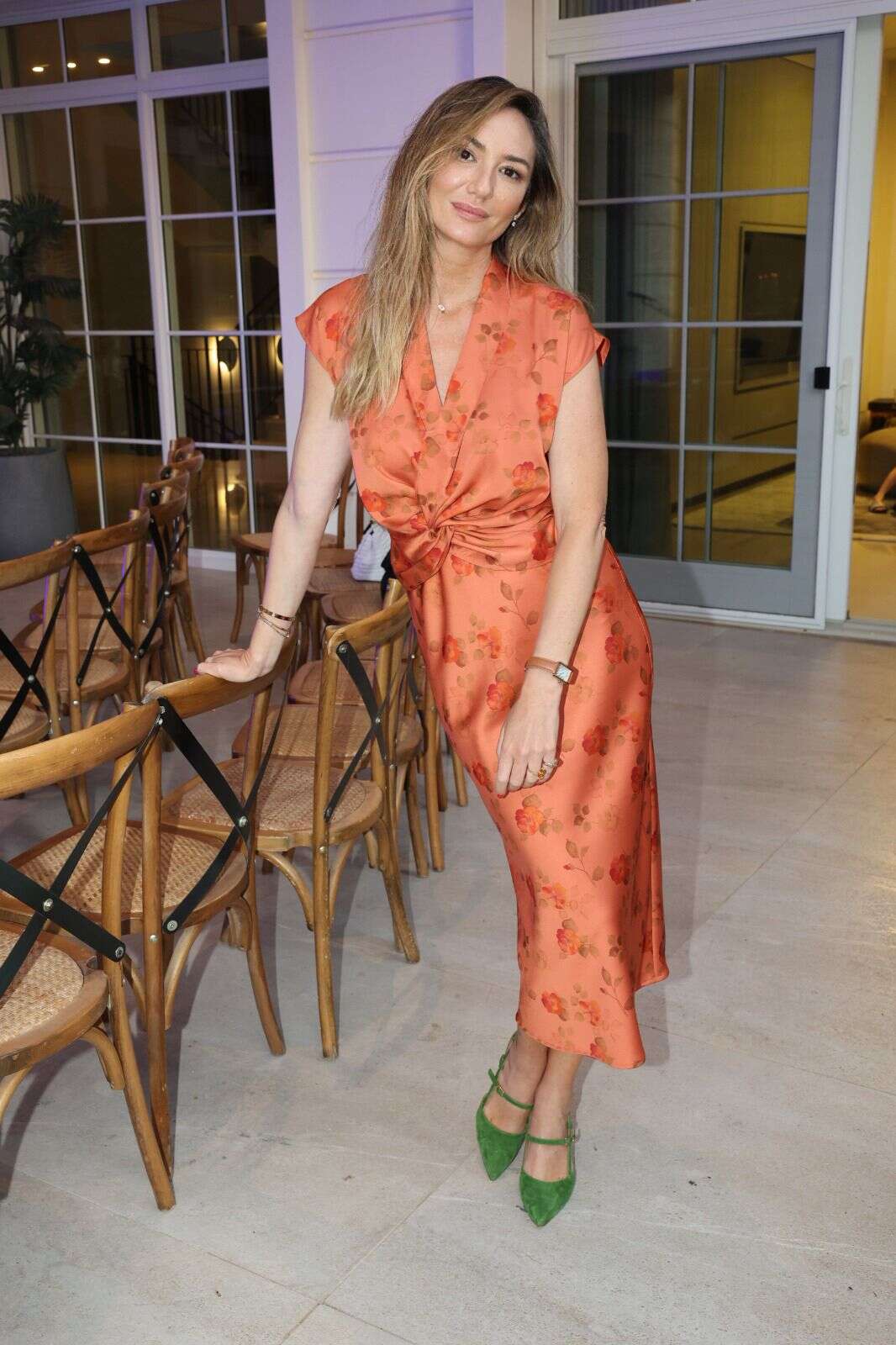 מיכל אנסקי באחד הלוקים הכי יפים שראינו אותה. לאירוע השקת מיזם "שעשני אישה", אנסקי לבשה שמת מקסי כתומה מבריקה עם הדפסי ורדים וגזרת ליפוף באיזור הבטן של משכית ונעליים ירוקות שעיצבה ללאפייט, צבעוניות מדהימה.