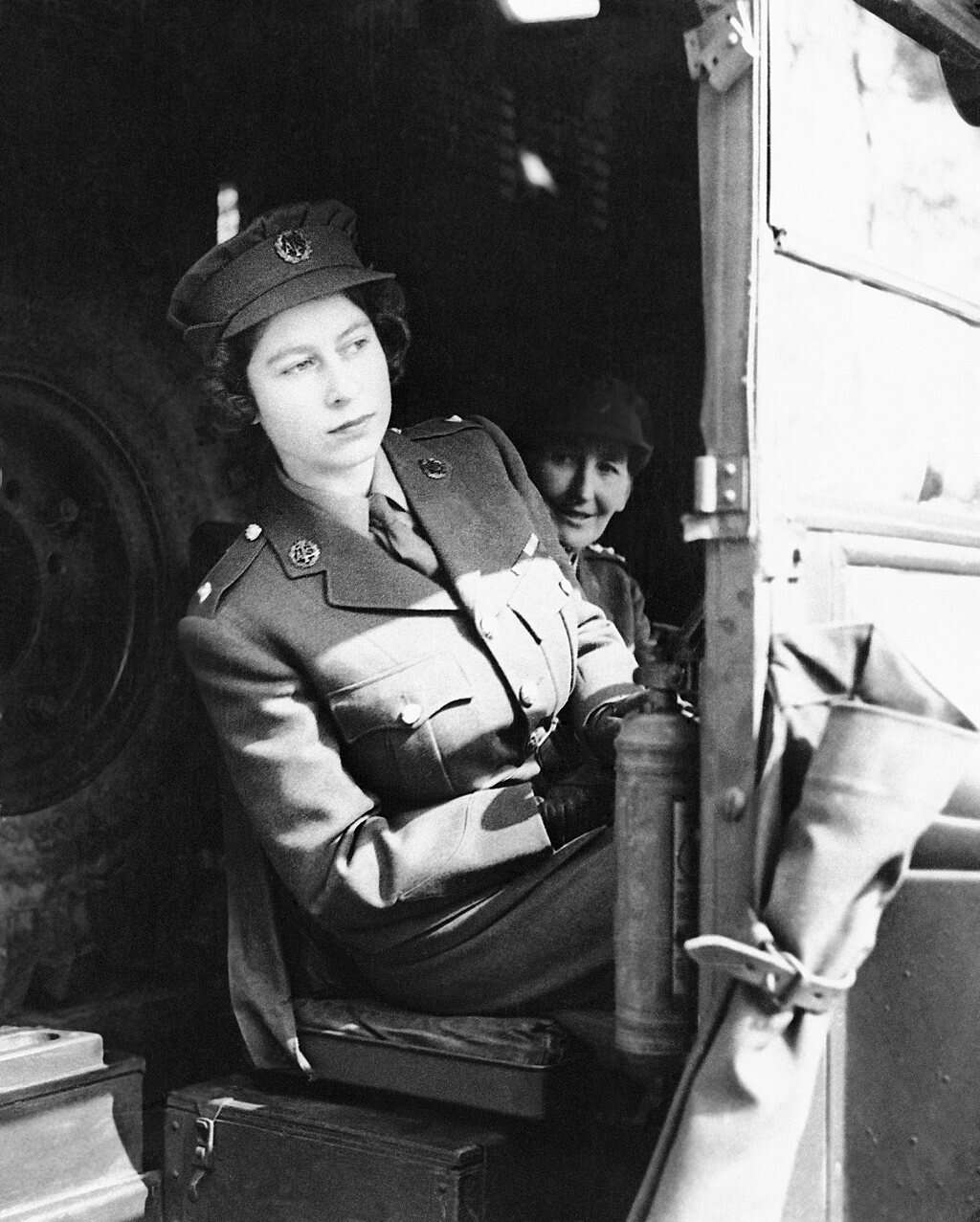המלכה אליזבת במדי הצבא, הצטרפה לשורות הצבא לתקופה קצרה. 1945. צילום: אי.פי
