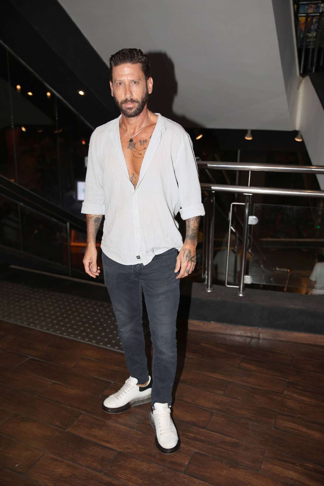 דניאל מלכה, הלא הוא האקס מבית "האח" של אילנה טרננקו, נראה מצוין. מלכה הגיע בסטייל ספארי. הוא בחר במכנסי בד בצבע חאקי, שאותם שילב עם חולצה מכופתרת קצרה בהדפס סוואנה ונעליים בסגנון צבאי בצבע שחור. מבחינתנו מדובר בצבעוניות מדויקת ובטוטאל לוק מנצח.