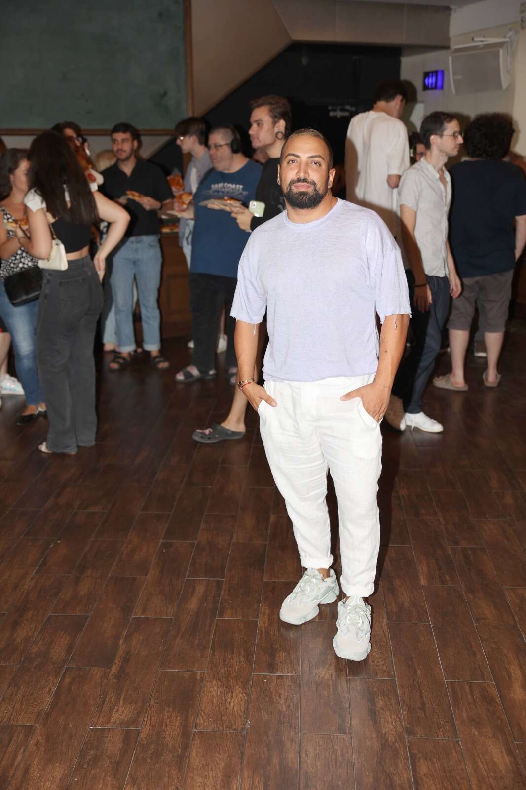 ונעבור לאורחים שלא היו בבית "האח הגדול". המאפר גילי אלגבי מ"המרוץ למיליון", נראה מצוין בטוטאל לוק מרענן וכיפי. אלגבי לבש מכנסיים לבנים בשילוב טישירט בצבע סגול לילך ונעלי ספורט, טוטאל לוק קליל ולא מתאמץ שמתאים לאירוע.