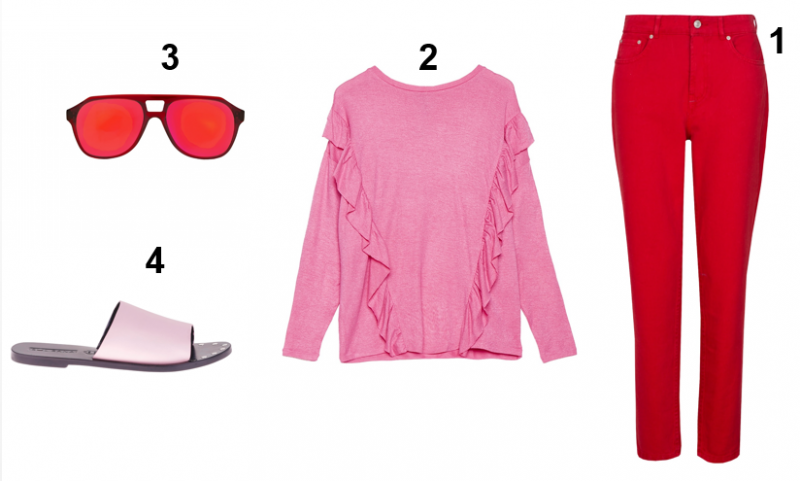 אז אם את טיפוס נועז במיוחד, תוכלי לשלב עם האדום שלך ורוד פוקסיה ואם את מעט פחות, תוכלי ללכת על גוונים שקטים יותר של ורוד. במידה ואת מהפחדניות באמת, תוכלי להכניס את הצבע בעדינות בעזרת אקססוריז (תיק, נעליים, או משקפי שמש).