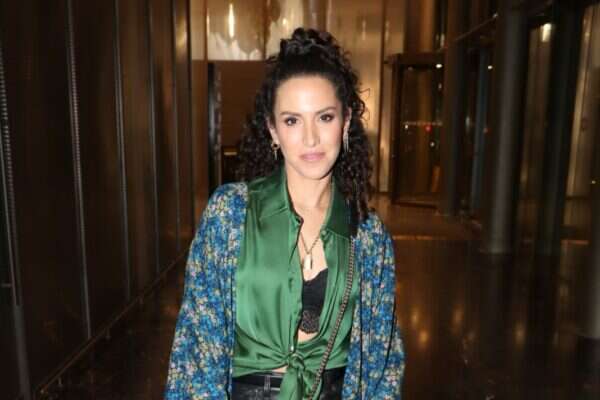 גם השחקנית נלי תגר הגיעה בחליפת אוברסייז טרנדית, והיא בחרה בהדפס מנומר בשילוב עם תיק צד שחור. לטעמנו ז'קט קצר יותר היה מתאים למידותיה של השחקנית בצורה טובה יותר.