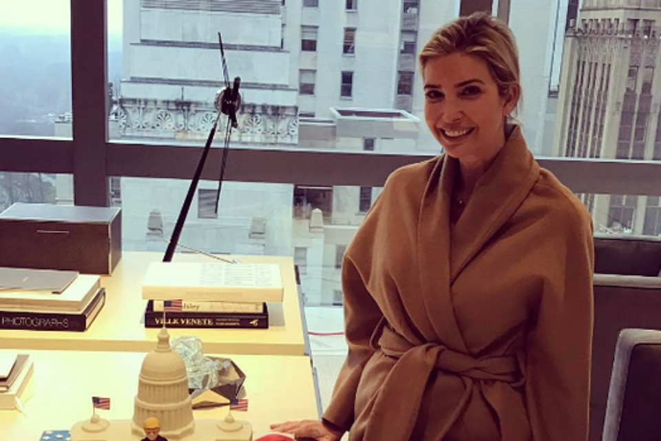 נראה שטראמפ מתחברת במיוחד למעילי חלוק עם קשירה במותן, אחרת אין להסביר איך יש לה תמונות עם שניים כאלה. בנוסף, ניתן לשים לב בלוקים של איוונקה כי למרות כספה הרב, היא ממעטת בתכשיטים ושומרת על נקיון הלוק באופן עקבי.