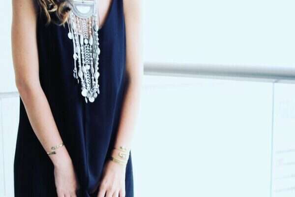 שרשרת אתנית גדולה עם נוכחות וצמידים שבטיים.