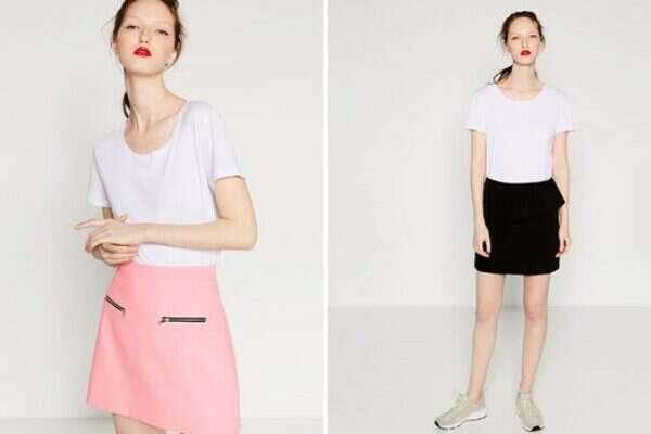 חצאית ורודה: 149.90 ₪, זארה • חצאית שחורה: 169.90 ₪, זארה