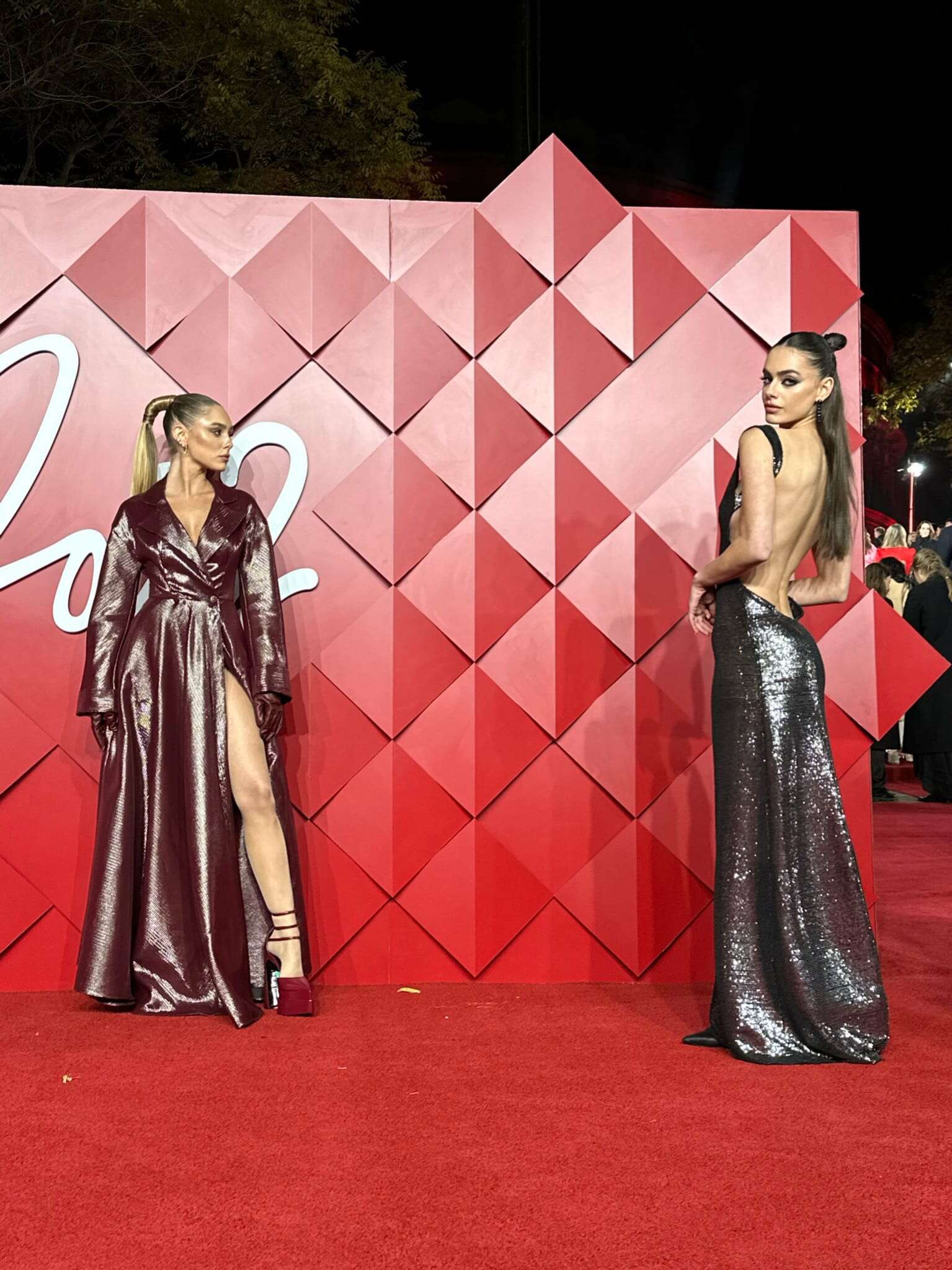 נתחיל בדוגמניות יעל שלביה ועומר נודלמן, שכבשו את השטיח האדום בטקס פרסי האופנה של לונדון. שתיהן לבשו שמלות של המותג רנואר. שלביה הגיעה בשמלה כסופה עם גב חשוף מאוד, מחשוף עם בד נשפך, ואיפור מעושן כבד. אהבנו את הגזרה של השמלה, אבל האיפור לא החמיא לשלביה, ולמרות שמדובר בשטיח אדום, היינו מצפים למשהו מעודן יותר. ונודלמן בחרה בשמלה מבריקה בגזרת ז'קט בצבע בורדו-חום, עם נעליים תואמות. לא אהבנו את הבד שממנו עשויה השמלה, שנותן לה מראה מעט זול, והנעליים שאמנם מדברות עם השמלה בצבעים, אבל לא הולמת את הלוק.