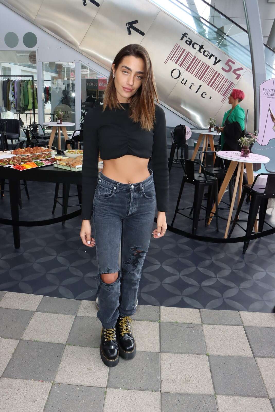 נטע ברזני גם הגיעה בטוטאל לוק פשוט יחסית, אבל יותר מעניין. היא לבשה מכנסי ג'ינס משופשפים בצבע אפור עם קרעים, בשילוב טופ שחור חושף בטן עם שרוולים ארוכים, בטרנד שהכוכבות אוהבות -  לדחוף את הטופ מתחת לחזייה. היא שילבה אותם עם מגפיים בסגנון צבאי עם טאץ' מעניין של שרוכים צהובים.