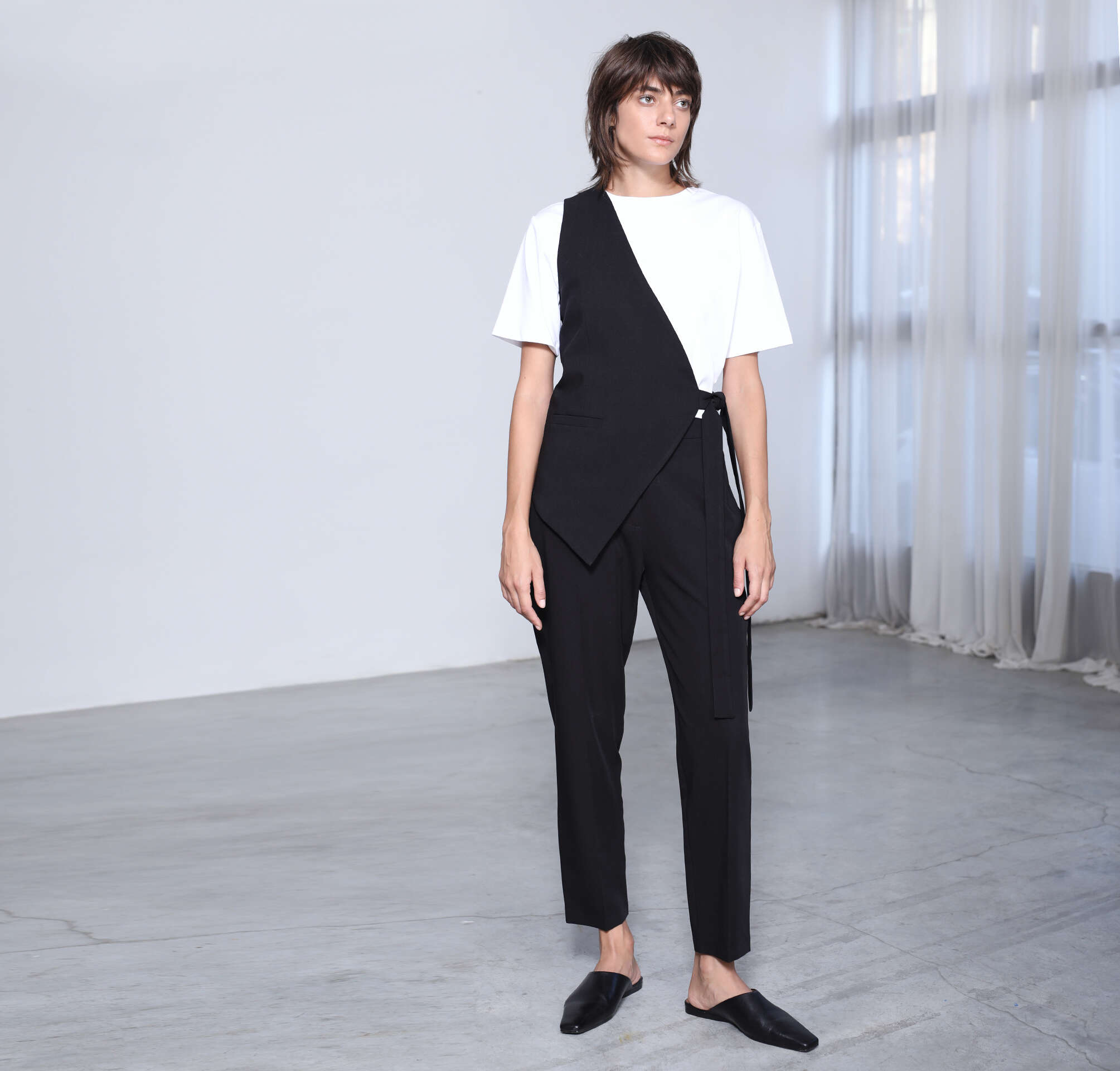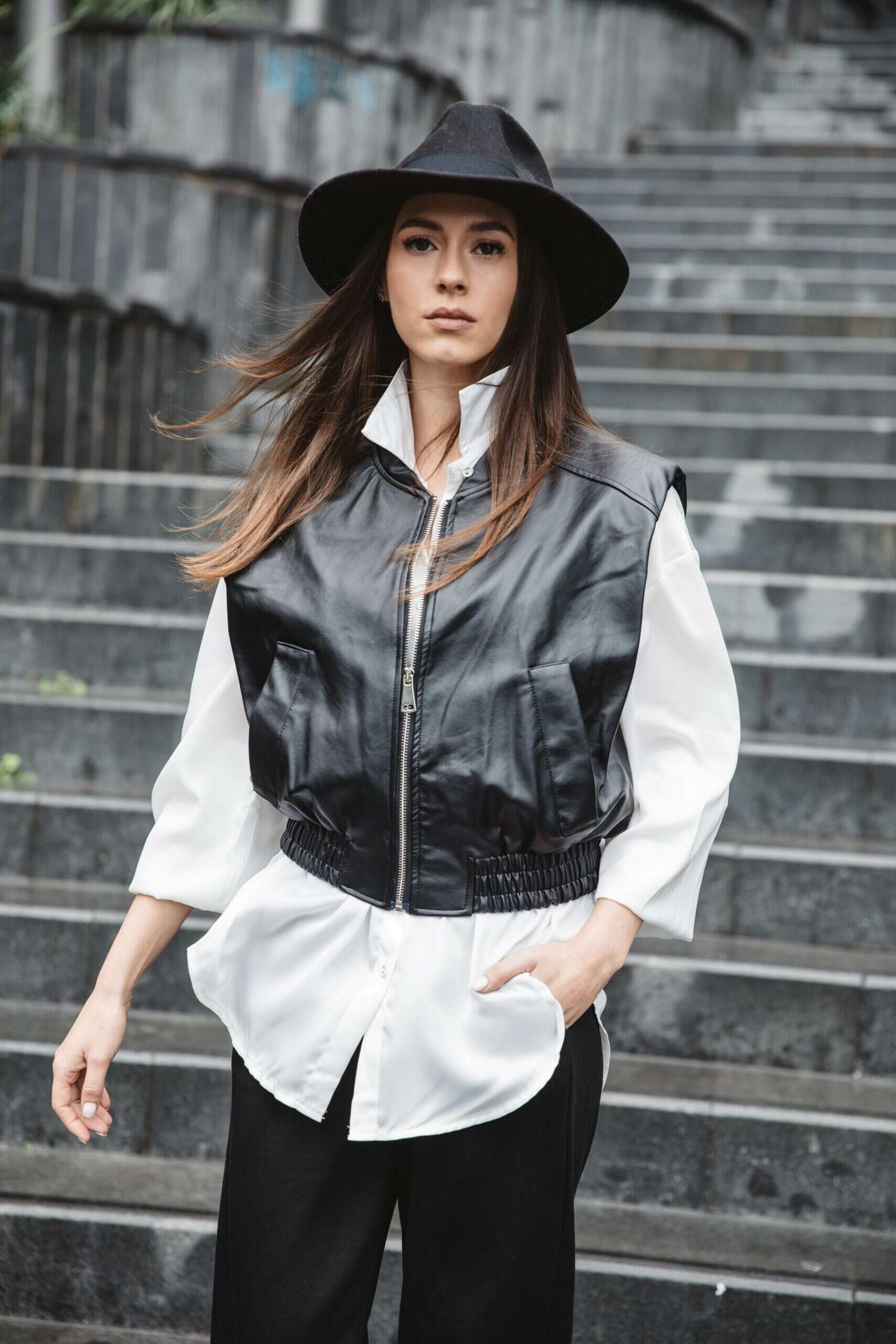 חולצה מחויטת עם ווסט עור שחור, יאנגה, צילום: אורית פניני