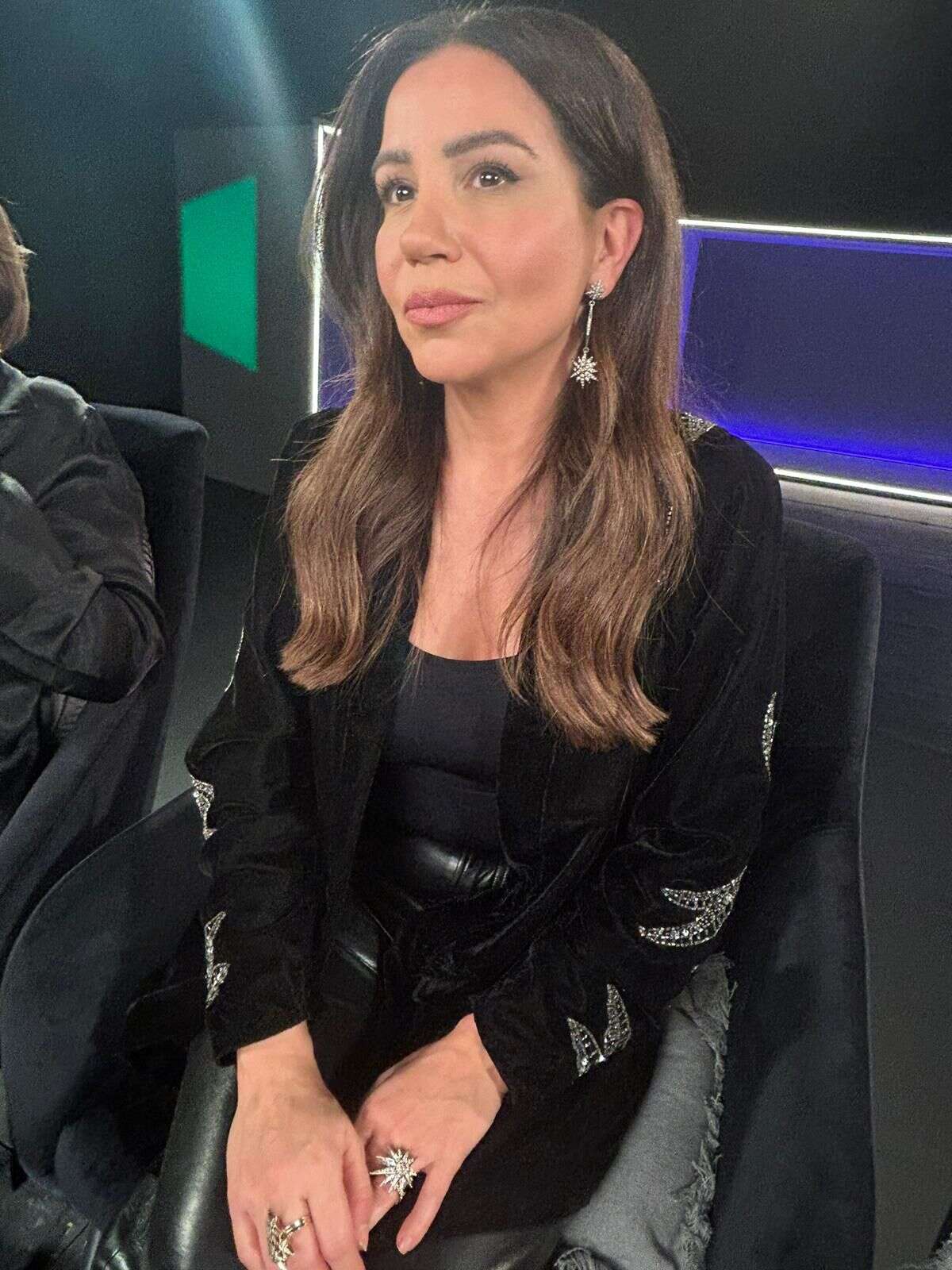 פוליאקוב לובשת ז'קט קטיפה שחור ומכנסי עור של דורית בר-אור, ועונדת תכשיטים של המותג ה.שטרן, כל זה בניצוחה של הסטייליסטית הצמודה אורית אפרתי. עפנו על הז'קט, שהזכיר לנו שקטיפה היא טרנד חורפי שאנחנו אוהבים לאמץ.