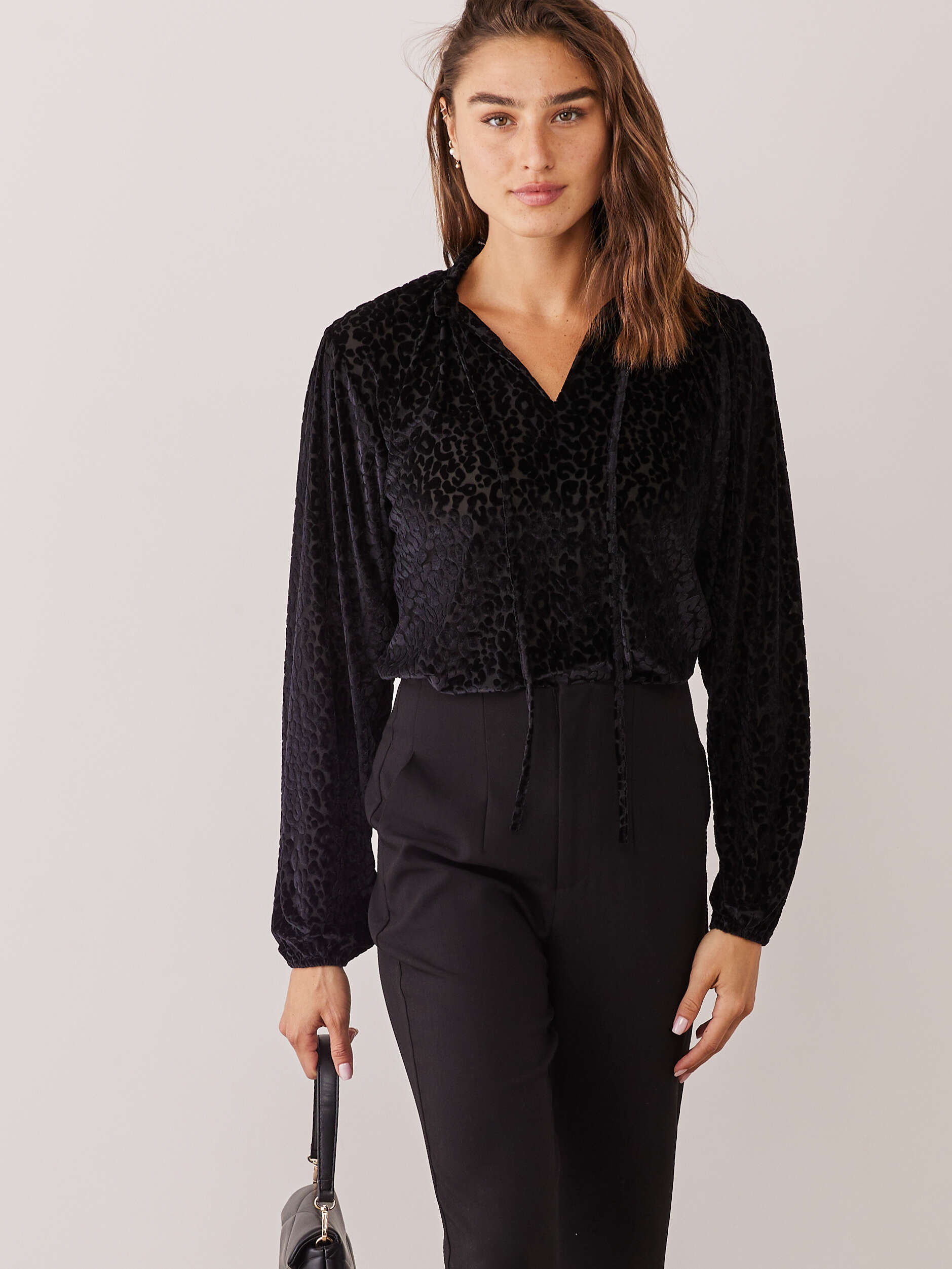 נתחיל משמלה שחורה קטנה מבד קטיפה, בשילוב עם שרוולים שחורים שקופים. שימו לב איך הבד מייצר תנועה במפגש עם התאורה. שמלה מקטיפה תייצר טוטאל לוק יוקרתי ומתוחכם שייתן לכן וייב יותר מעניין מסתם בד שחור.