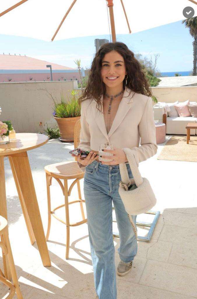 חיון בחרה בלוק קצת פחות פורמלי, והגיעה במכנסי ג'ינס ישרים ולא צמודים, עם קיפול שחושף את הצד הפנימי בקצה. היא הוסיפה ז'קט שחור מחויט עם צווארון מוגבה, שסגור בחלקו העליון, ובחלקו התחתון חושף את הבטן. היא הוסיפה תיק שחור ונעלי עקב צ'אנקיות בצבע שחור. התחברנו ללוק רק באופן חלקי. הז'קט יפה ואלגנטי ויושב עליה מצוין, אבל החיבור עם מכנסי הג'ינס והנעליים הגסות לא החמיא, והיה עדיף אם היא הייתה בוחרת במכנסי ג'ינס כהים יותר, ובנעלי עקב אלגנטיות.