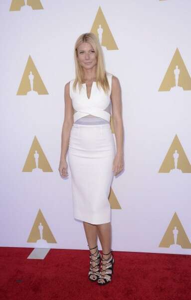 לגווינת' פאלטרו יש כישרון מאוד מיוחד: היא יכולה ללבוש צבעים שאף אחת לא יכולה, ועוד להיראות בהם פצצה. איזו עוד אישה על הפלנטה הזו הייתה יכולה להיראות כל כך טוב בשמלה כזו? הבטן שלה פשוט מושלמת. ומושלמות לא פחות הנעליים האלה. הקשירה, שלא מתאימה לכל כף רגל, ממש נהדרת, ושילוב הרצועות הלבן משמח מאוד. האיפור המינימילי גורם לה להיראות קצת חיוורת, אבל מצד שני הוא מקנה לה לוק ייחודי.