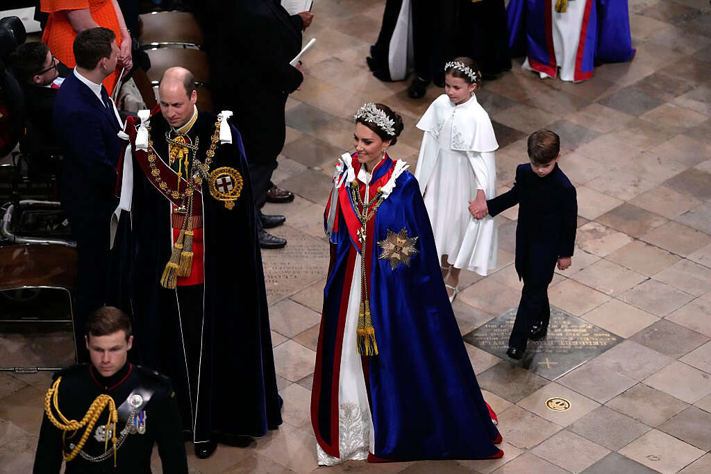 הלחץ על כתפיה של הנסיכה קייט מידלטון לספק את הסחורה בהכתרתו של המלך צ'ארלס השלישי היה מורגש לקראת היום הגדול, ונדמה כי כל העיניים היו נשואות אליה, והיא כמובן שלא איכזבה. המלכה לעתיד היתה מלכותית כתמיד בשמלת קרפ רקומה שנהב משי ונשארה נאמנה לבית עיצוב האופנה הבריטי של אלכסנדר מקווין, שגם היה אחראי על שמלת הכלולות שלה ב-2011.