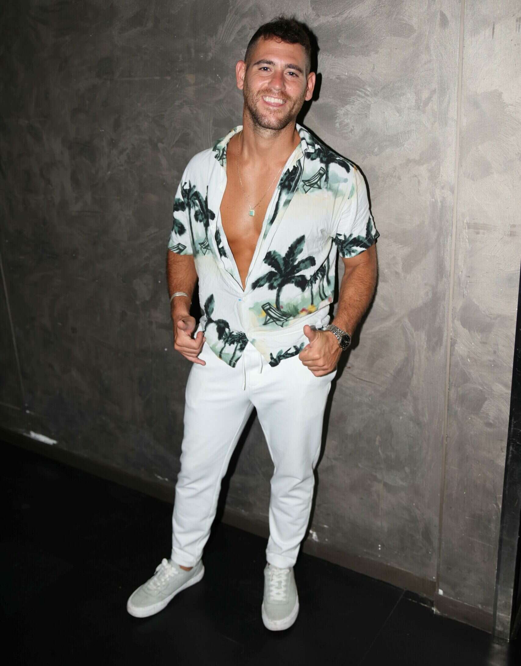 נתחיל עם אורי נגר שנחשב לחתיכי של העונה, זה שכל הבנות רצו אך הוא בכלל בקטע של לחזור לגרושה. נגר נראה מעולה במכנסיים לבנים, סניקרס לבנות וחולצה מכופתרת קצרה עם הדפס מופשט בצבעוניות של כתום ולבן. הצבעוניות מרעננת וקלילה וכל הפריטים מדויקים, אנחנו היינו סוגרים כפתור או שניים, בכל זאת, זו לא מסיבת חוף.