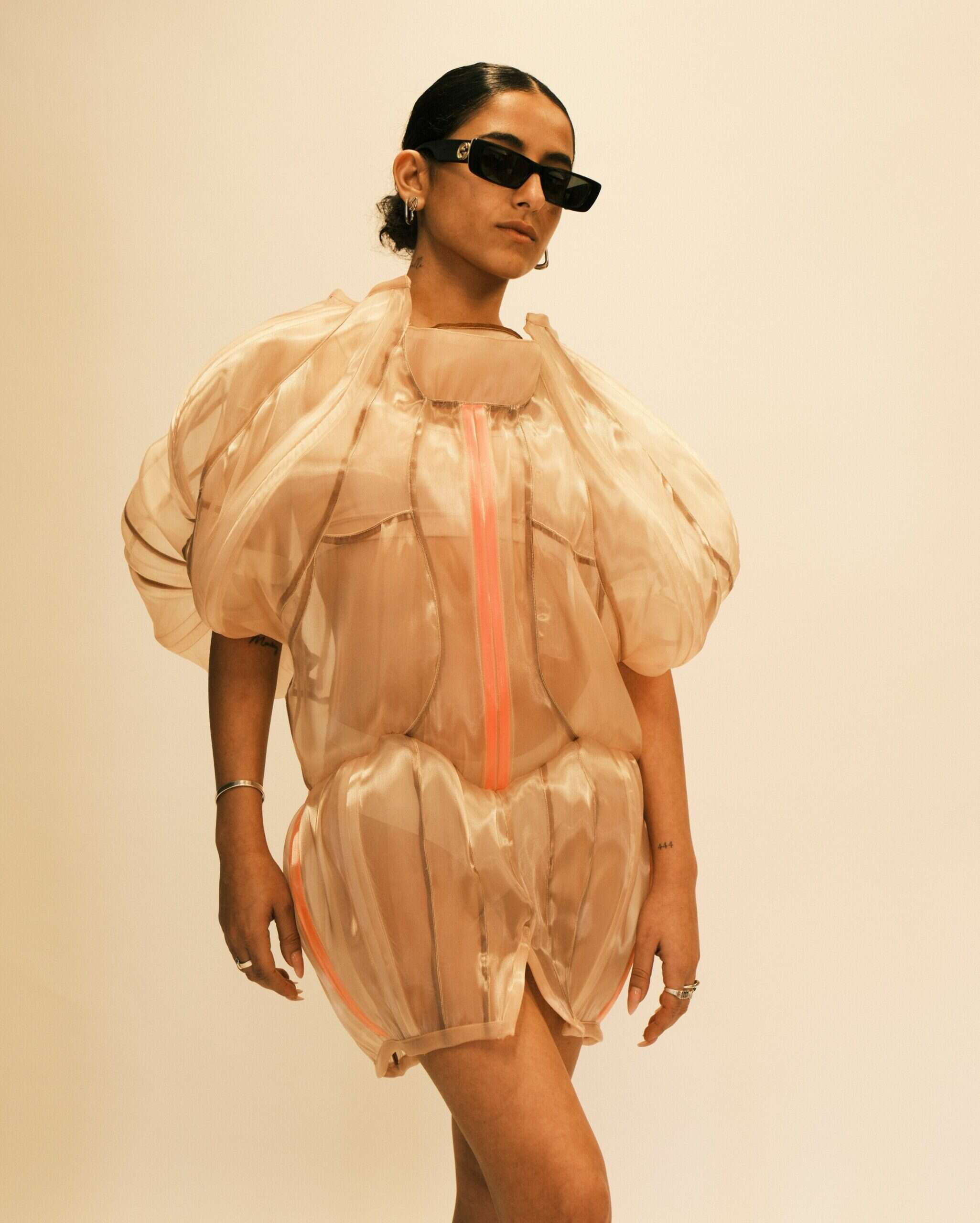 נוגה ונגריק בחרה את העפיפון בגלל התחביב של אביה. "שיחקתי עם העפיפון שסרקתי והגעתי לצורניות מעניינת. בשלב הבא בחרתי את הדגם והוצאתי ממנו גזרה והכל באמצעות תוכנות מתקדמות שאפשרו לי לראות בעצם את התוצר הסופי עוד לפני שאני תופרת אותו. החוויה של היצירה שונה לחלוטין כי התוצר לא היה מתקבל בדרך אחרת", אומרת ונגריק.
