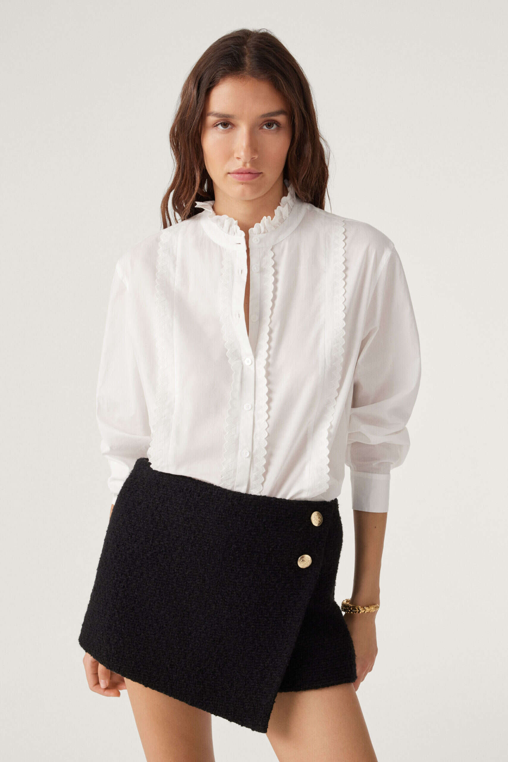 נתחיל מהחולצה המכופתרת הלבנה, שאמנם ברור לנו איך נראית הגרסה הקלאסית, אך חוץ ממנה יש עוד מגוון אפשרויות שיוסיפו טאץ' אלגנטי יחד עם הסטייל האישי שלכן. מכיוון שבמקרה הזה הצבע לא משתנה, המשחק המעניין הוא טקסטורות וגזרות.
