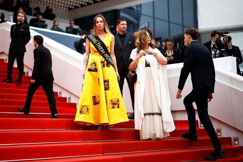 השטיח אדום, אבל הלב צהוב: פסטיבל קאן המתקיים בימים אלה מתהדר בעשרות ידוענים המתהלכים על השטיח האדום במיטב מחלצותיהם ומחייכים לצלמים, אך מי שמשכה את תשומת הלב אמש (רביעי) הייתה אישה אמיצה אחת עם מסר ברור.