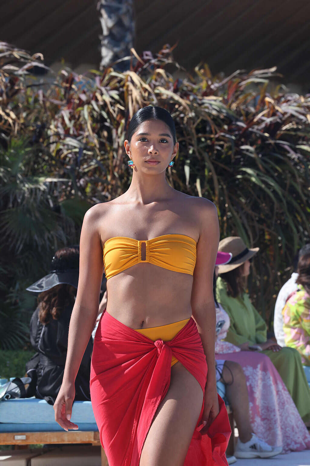 התצוגה התקיימה בבריכת סנט רג'יס הנוצצת כאשר עצי הדקל שימשו כתפאורה לשלל בגדי ים צבעוניים. הקולקציה כללה מגוון רחב של גזרות בגדי ים שנעשו מבגדי ים שלמים בעלות נפתח וי עמוק, בגדי ים בסגנון סטרפלס וגם ביקיני. פלטת הצבעים נעה מכחול רויאל, צהוב חרדל, ירוק עז ואדום.