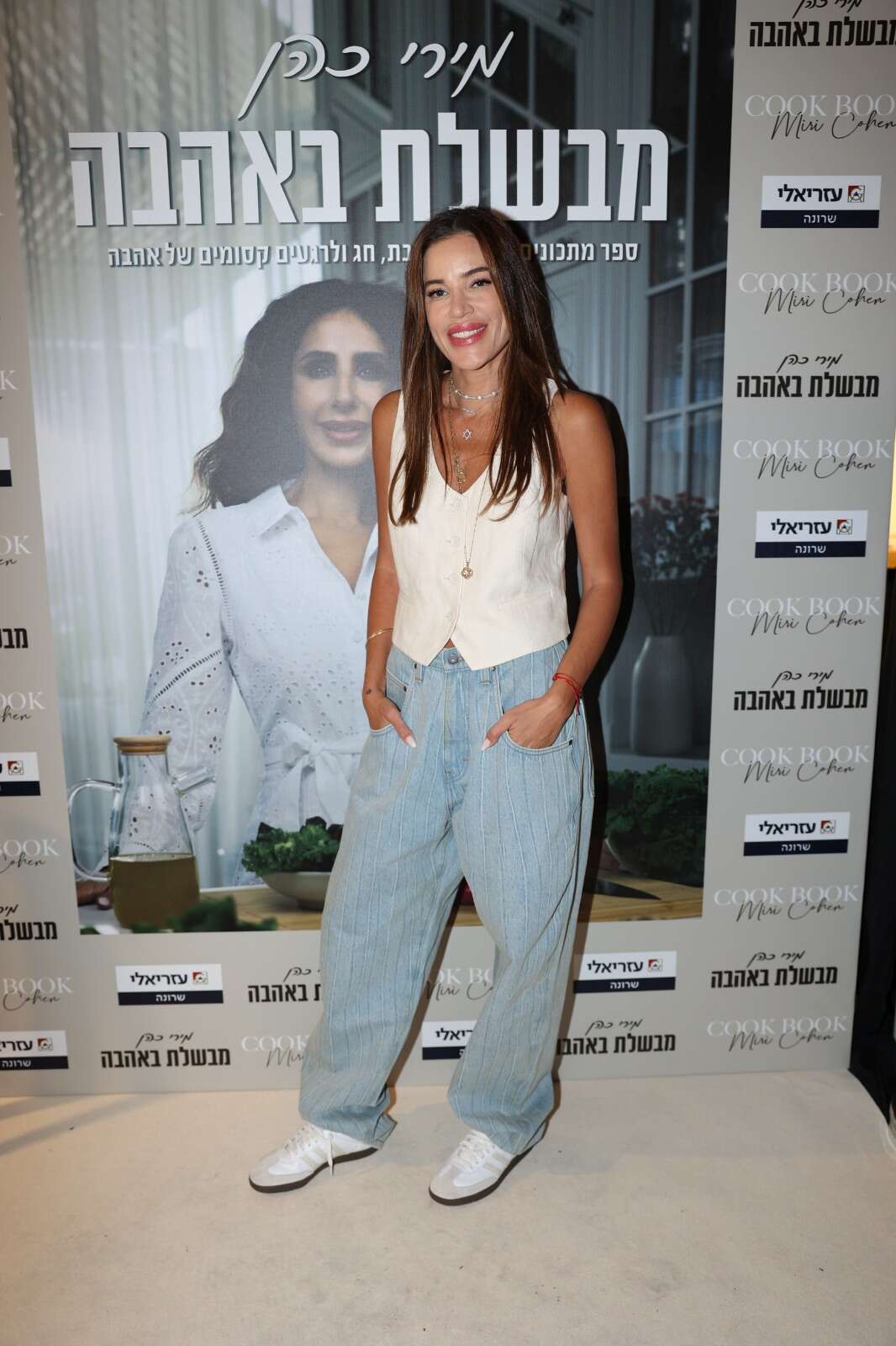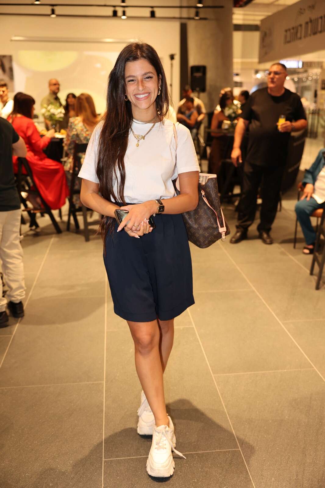 גם הדוגמנית ג'סיקה אלטר הגיעה במראה יום-יומי מחמיא שכלל מכנסי ברמודה טרנדיים בצבע כחול נייבי, טישרט לבנה, סניקרס לבנות ותיק צד חום ממותג. צבעוניות מושלמת וקלילה לאירוע השקה של ספר מתכונים.