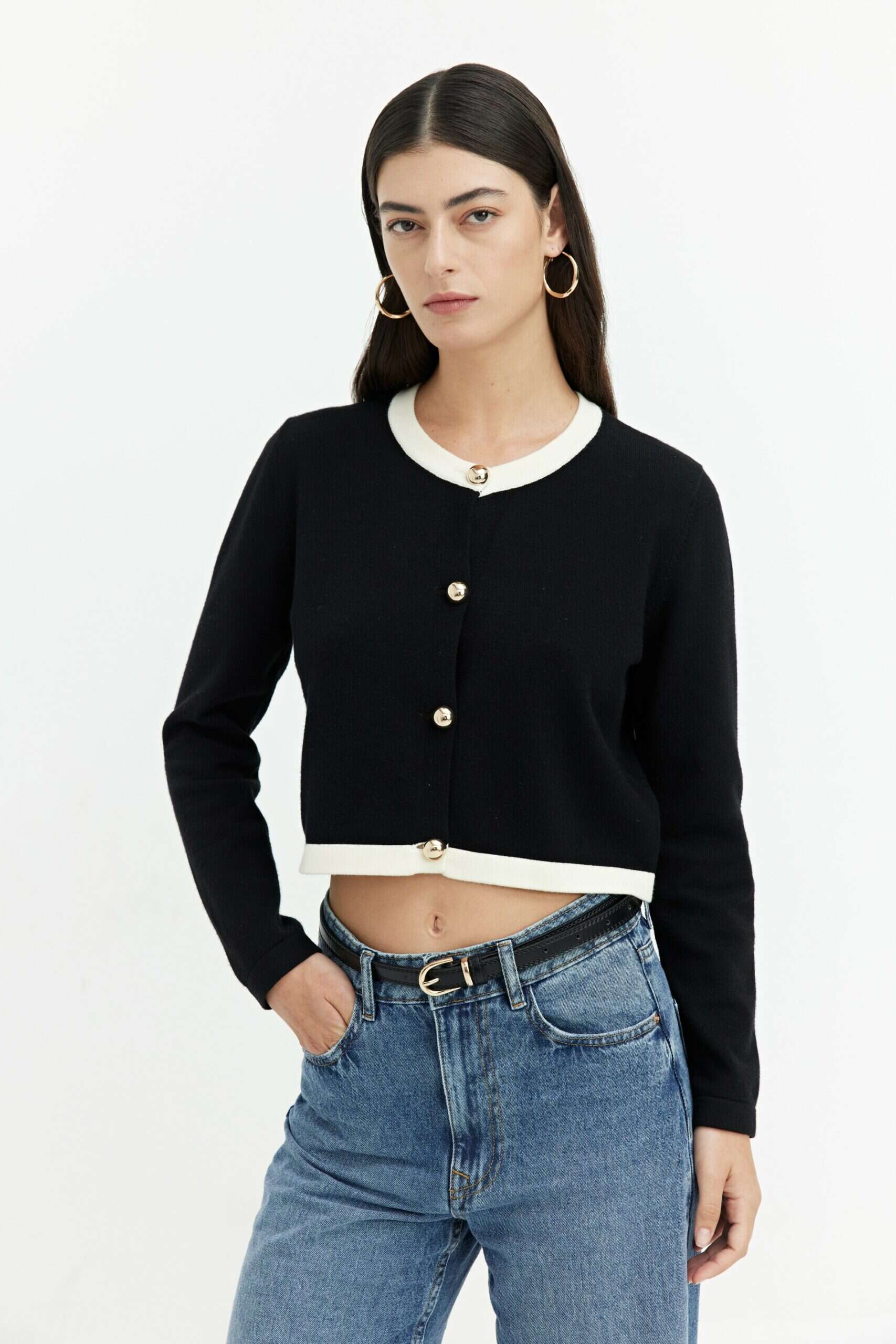 צמוד ומדויק: למראה מוקפד ועסקי, הקרדיגן הצמוד והדק הוא הבחירה המושלמת. עם כפתורים קטנים ואלגנטיים, הוא משתלב נהדר עם מכנסיים או חצאית בגזרה גבוהה.