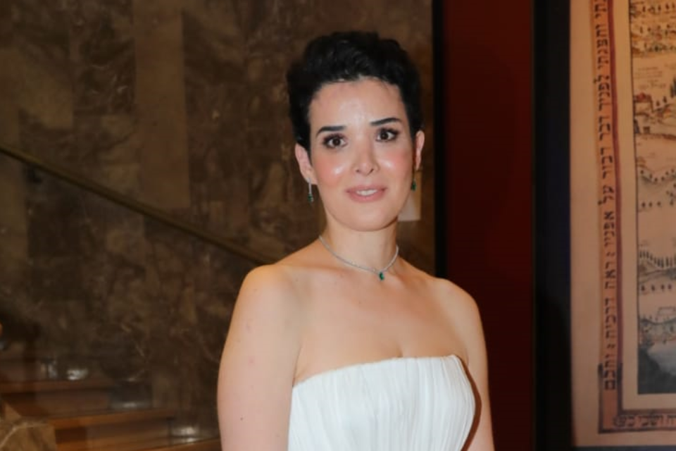 איסקוב, שלא הורשתה על ידי בעלה ללבוש שמלת סטרפלס, צעדה בפתיחת שבוע האופנה 2021 בשמלה לבנה נטולת כתפיות בעיצובו של ויוי בלאיש