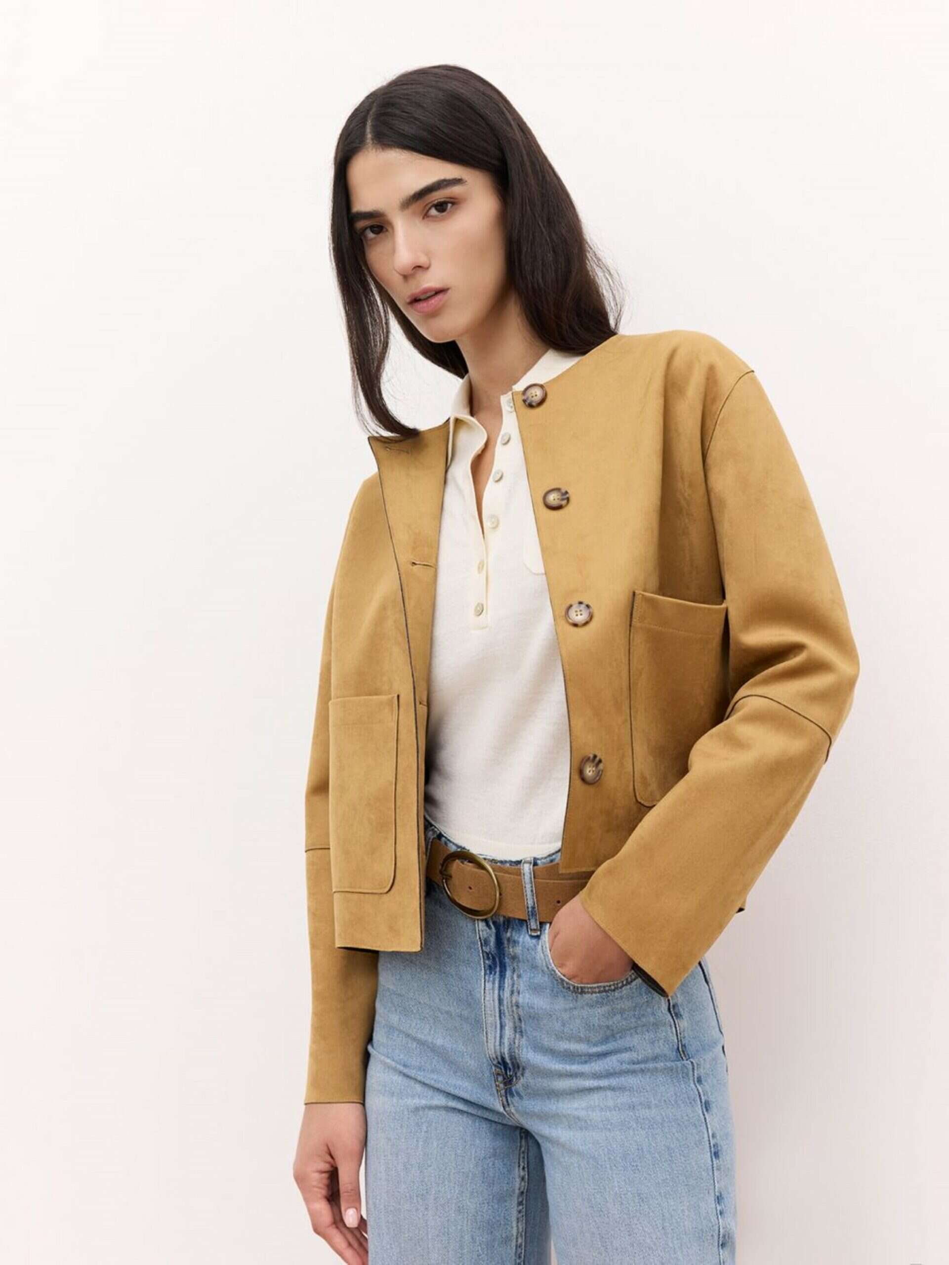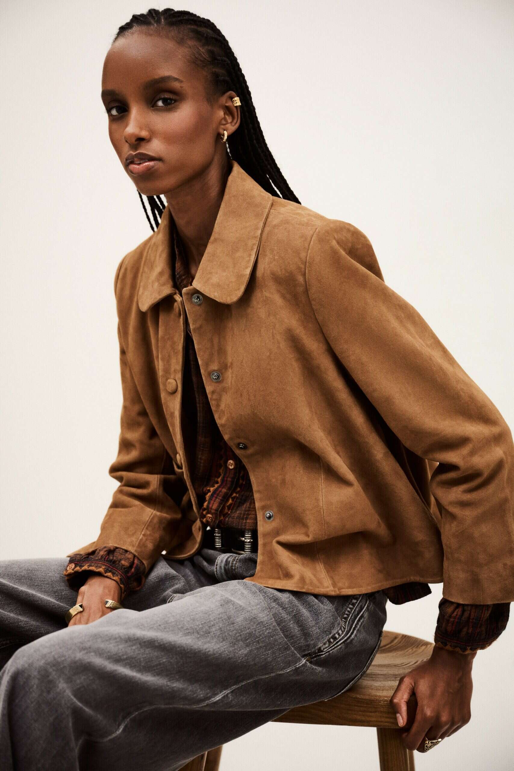 סתיו 2025 מציע מבחר רחב של גזרות, אורכים וגוונים לז'קט הזמש. הז'קט הקרופ הקצר, שמחמיא לגוף ומשתלב נהדר עם מכנסי ג'ינס בגזרה גבוהה או חצאיות עיפרון, מככב בדגמים של H&O וקסטרו ומעניק טאץ' קליל ונועז.
