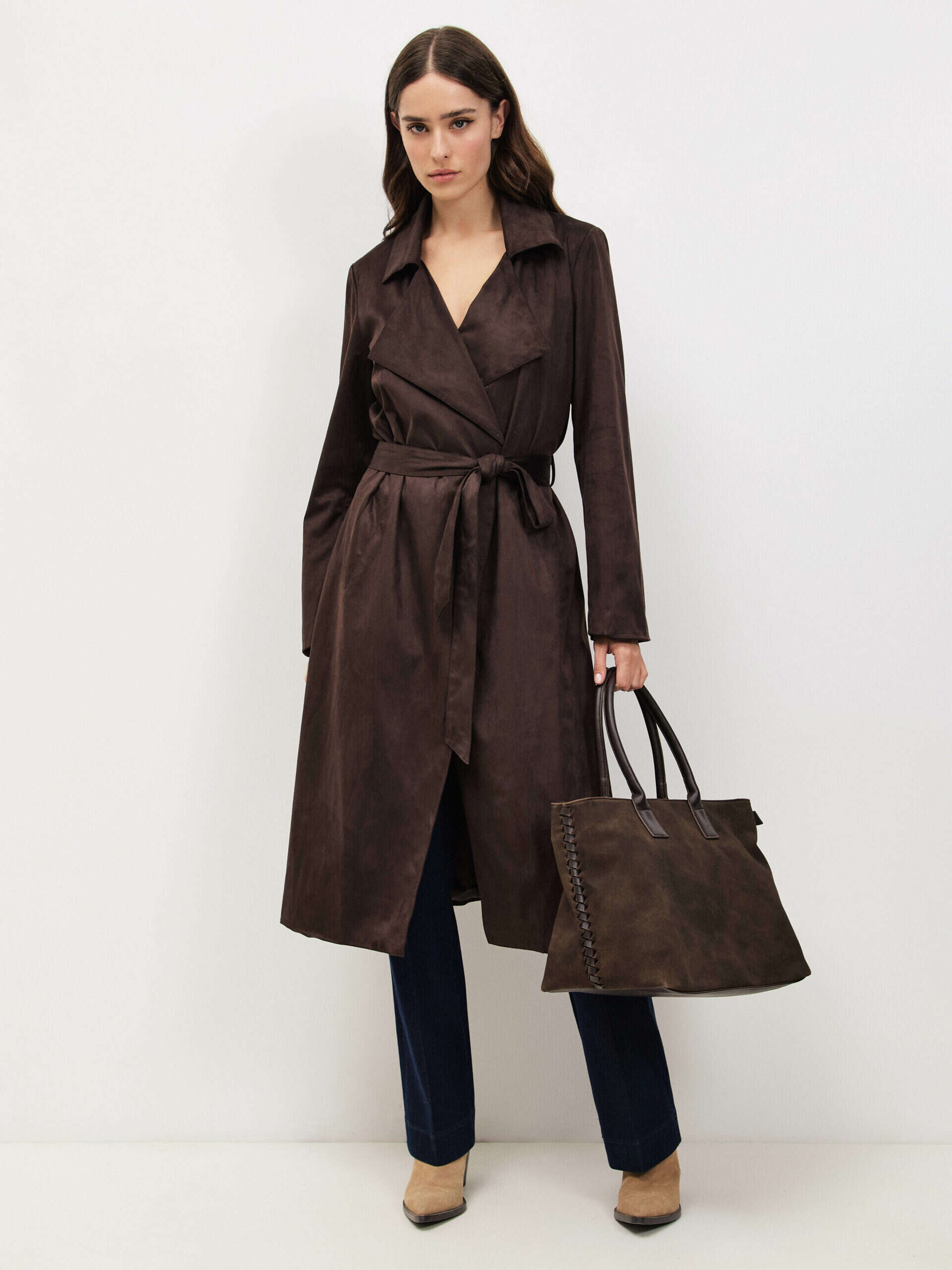 במקביל, הבלייזר הקלאסי עם הכתפיים המובנות, כמו זה של Kenneth Cole, משדר נוכחות נשית עוצמתית, בעוד שמעיל הזמש הארוך עם חגורת מותן מבית גולברי מוסיף מראה מתוחכם ונשי לערבים הקרירים.