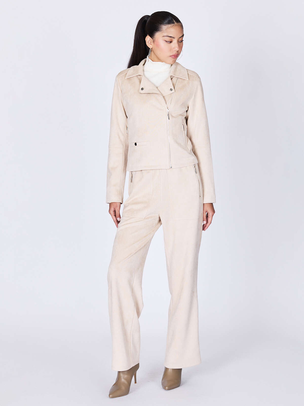 ז'קט הזמש משתלב בקלות כמעט בכל מראה. לעבודה עם חולצה לבנה, ג'ינס בגזרה ישרה או מכנסיים מחויטים, ונעלי עקב נמוך או מוקסין למראה מוקפד אך לא מתאמץ.