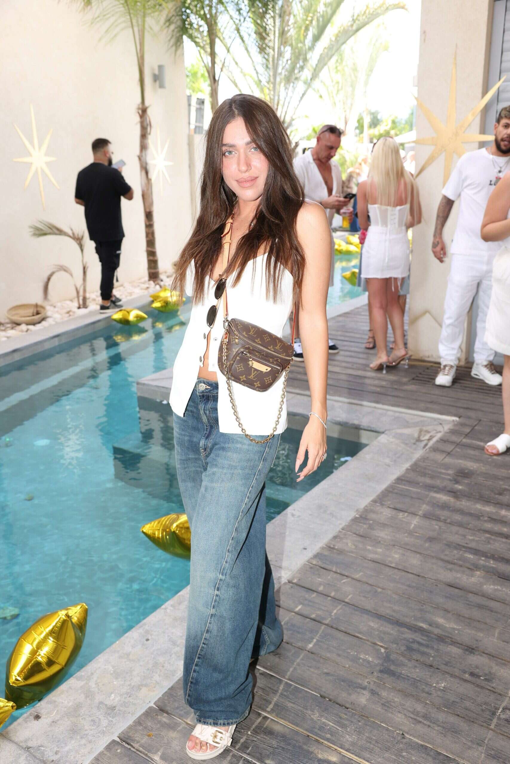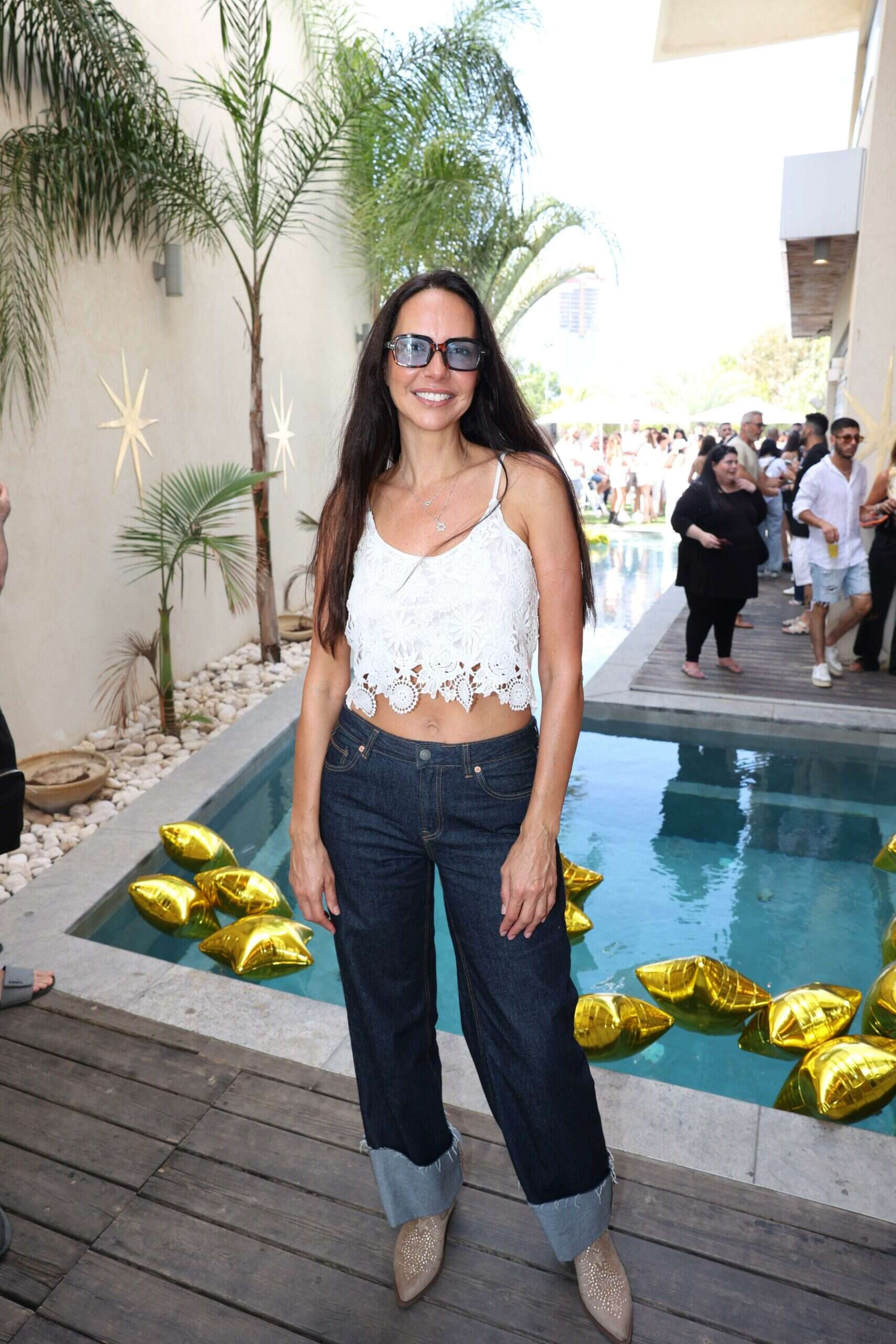 לינור סביניק באה בסטייל אורבני, אלגנטי וקליל, בדיוק מה שצריך לאירוע על שפת הבריכה. הגופייה הלבנה הפתוחה מונחת עליה באופן מושלם ויוצרת מראה קליל אך מעניין, והג'ינס הרחב משלים את הלוק עם תחושת רטרו מעודנת. תיק הלואי ויטון מוסיף נגיעה של יוקרה בלי להתאמץ, והסנדלים הלבנים סוגרים הופעה שהיא בול על הציר שבין קלאס לשיק עירוני.