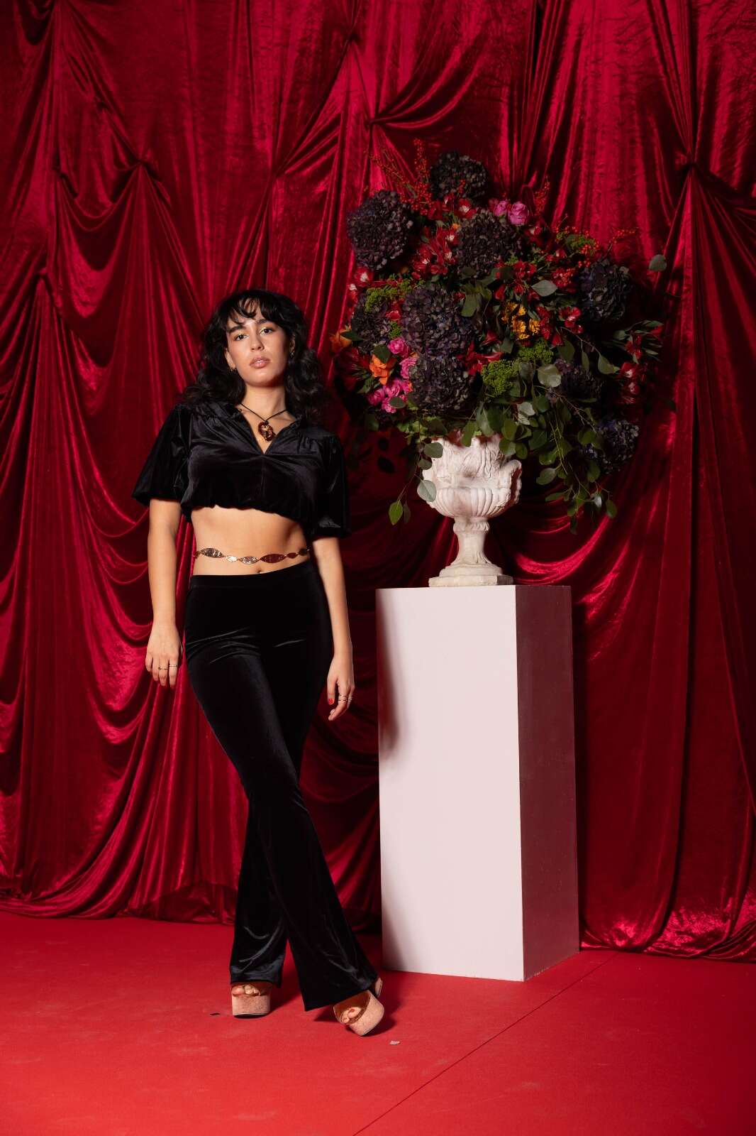 נועם קליינשטיין הביאה סטייל רך ונוסטלגי עם טוטאל לוק שחור מקטיפה שמרגיש כמו קריצה לשנות ה-70 במובן הכי שיקי שיש. הגזרה המדויקת של המכנסיים והטופ הקצר יוצרים מראה מחמיא עם טאץ' של ביטחון עצמי וסטייל טבעי. חגורת המתכת על המותניים מוסיפה ברק עדין ומדגישה את הקונטרסט שבין הבד הרך לנצנוץ המתכתי. טיפ קטן לשדרוג, תוספת של עגילי סטייטמנט או קלאץ' זהב היו יכולים להפוך את הלוק למעלף באמת ולתת לו את טאץ' הגלאם האחרון והמדויק ביותר.