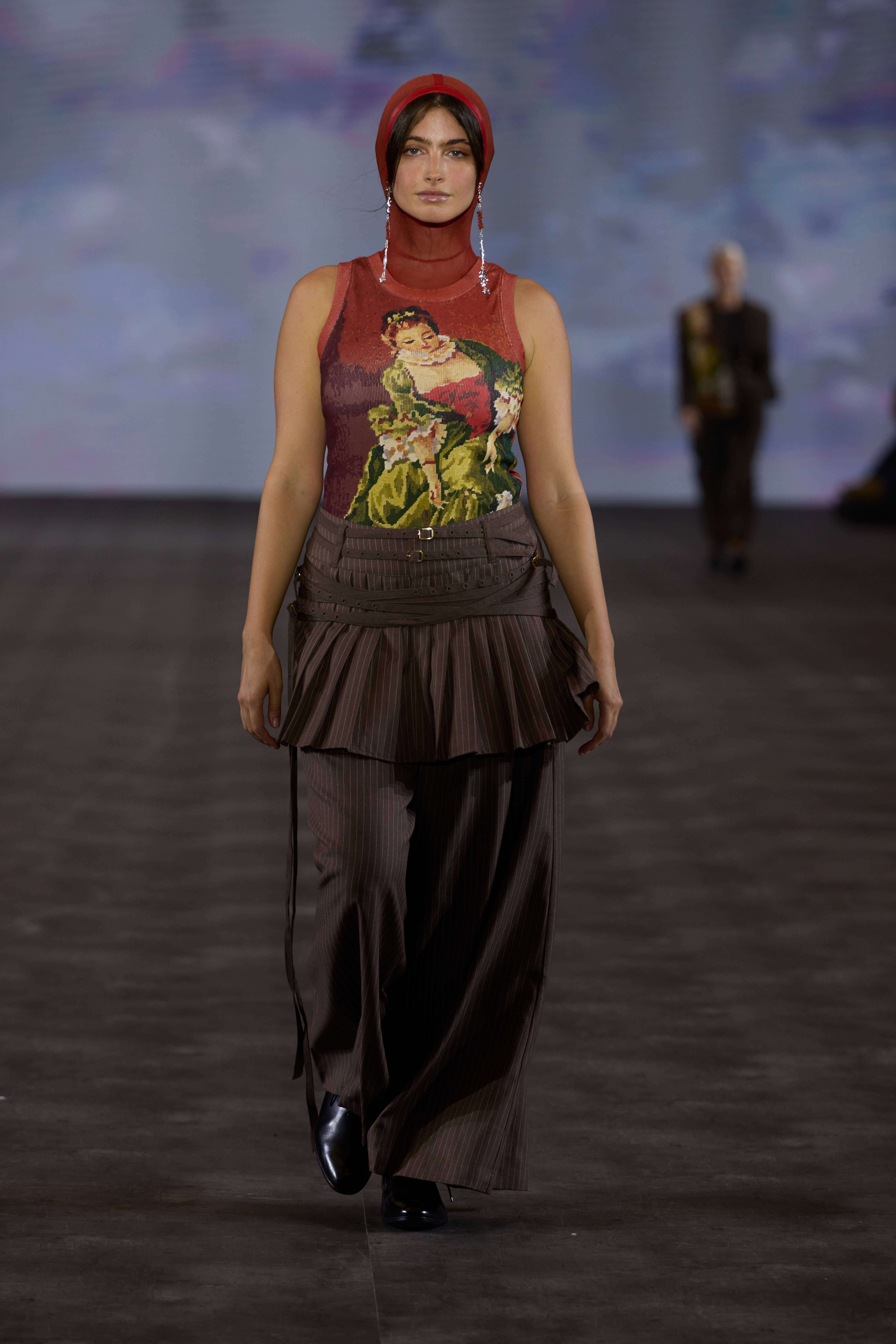 בחלק של Outre צעדה גם אריאלה ורטהיימר, שלבשה חליפה מחויטת בעלת שני חלקים עם הדפס רקום ייחודי על צידו השמאלי של הז׳קט.