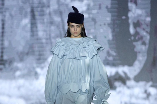 התצוגה של אהרון גניש שילבה גם היא אלמנטים דרמטיים - אך בסגנון שונה מאוד. גניש עיצב קולקציה שמאוד מתכתבת עם הסגנון שלו כמעצב, ושילבה תפירה נפלאה ותשומת לב לפרטים הקטנים.