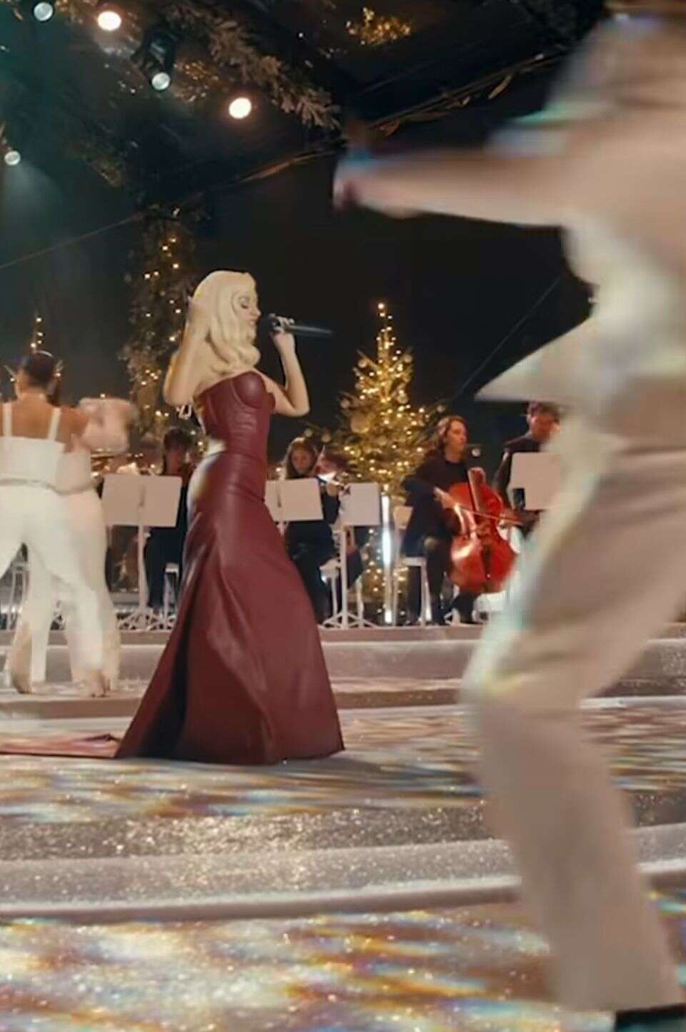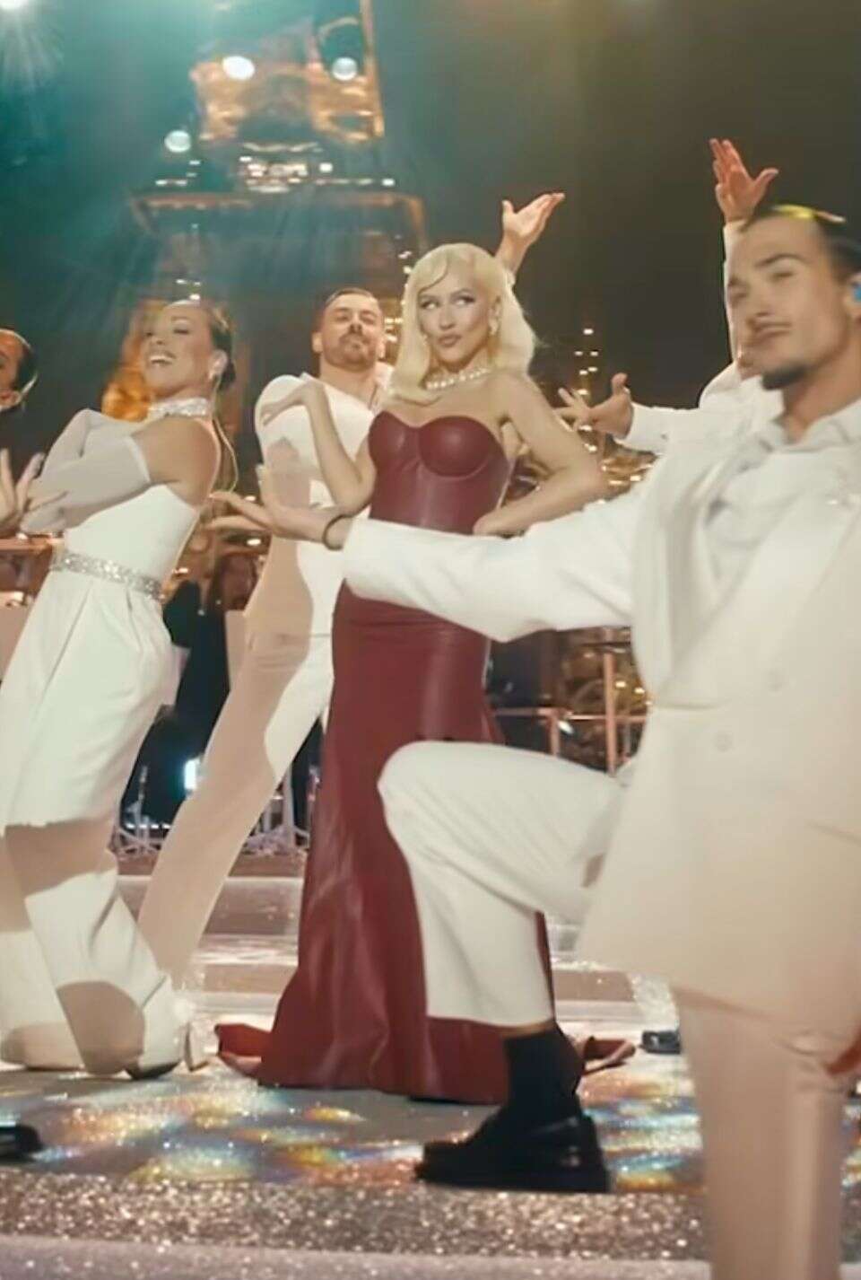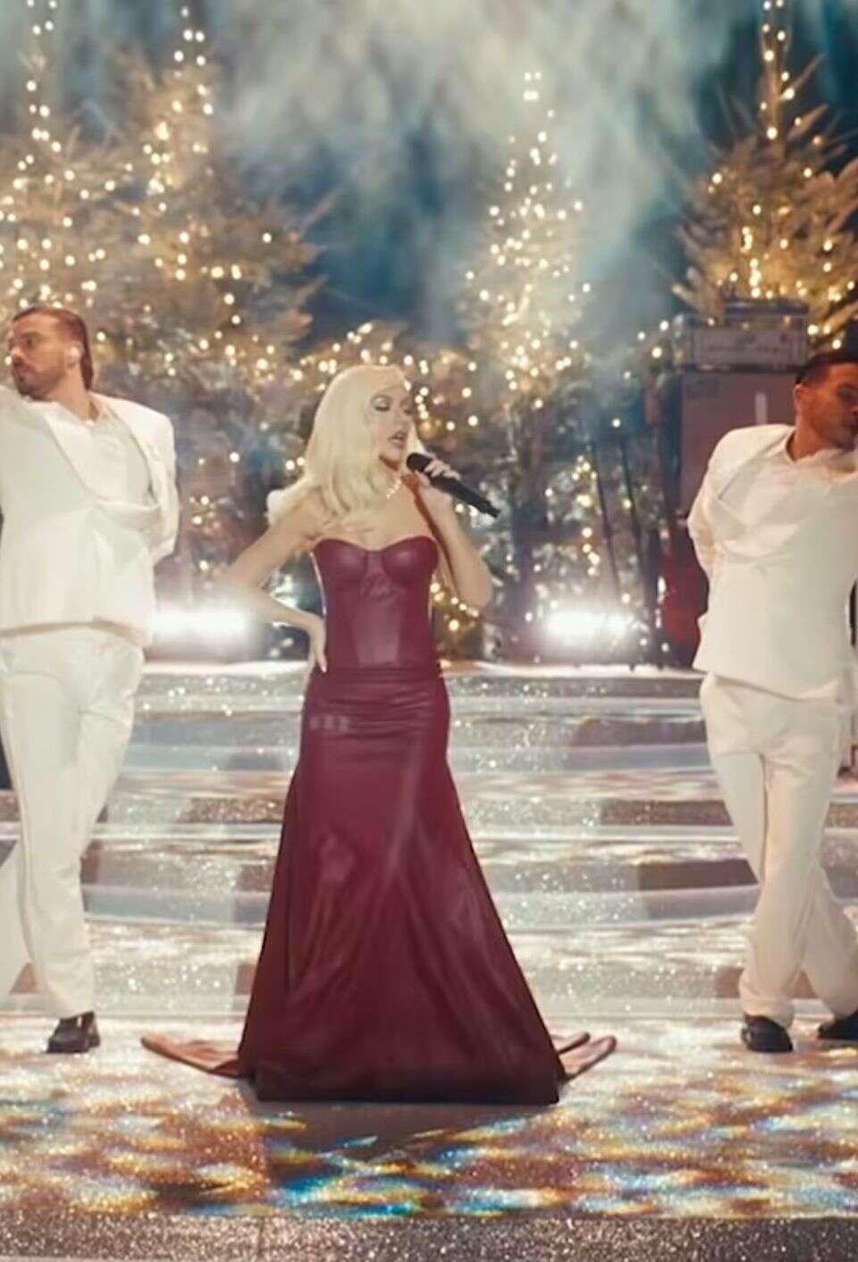 כריסטינה אגילרה בשמלה של אריאל ברקה / מתוך הטריילר