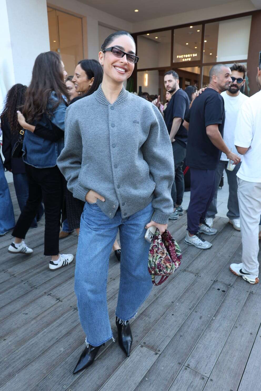 ספיר אביסרור הגיעה הפעם עם לוק שמרגיש פחות מלוטש מהרגיל, בעיקר בגלל חוסר האיזון בין הפריטים. הז'קט האפור הרחב נותן תחושת כבדות שמטשטשת את הגוף, והחיבור שלו לג'ינס בגזרה ישרה ונעליים מחודדות יוצר ביחד סילואט מעט מסורבל. גם תיק הפרחים לא משתלב עם השפה המינימליסטית של שאר הלוק. הכל יחד נראה יותר כמו אאוטפיט יומיומי מאשר לוק שנועד לאירוע אופנתי, וכשספיר בדרך כלל מביאה סטייל חד ומדויק, זה פשוט מרגיש פחות מחמיא ביחס לסטנדרט שהיא הציבה לנו.