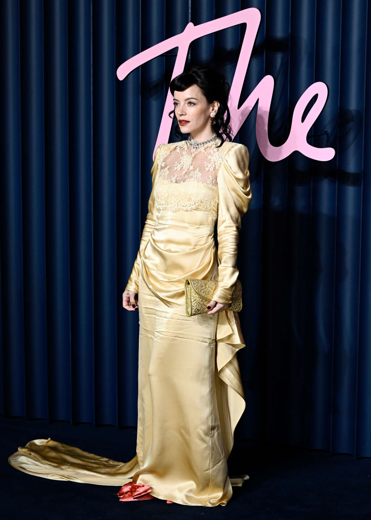 לילי אלן בשמלה בצבע צהוב חמאה של ג'יבנשי עם נעליים אדומות שנותנות את הטון / צילום: GettyImages