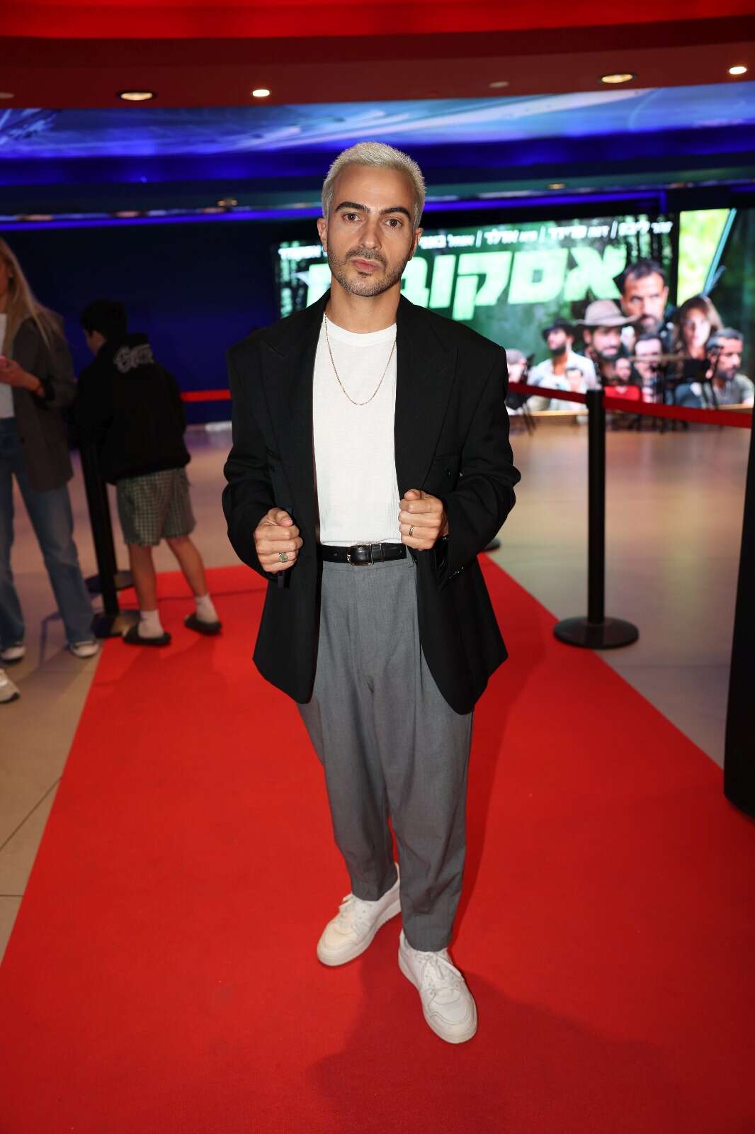 איתי תורג'מן נראה מעולה, נקודה. הוא מביא שילוב מדויק בין קלאסיקה לסטריט, ויוצר לוק שמרגיש נכון, עדכני ומאוד אישי. הג'קט השחור עם הכתפיים המודגשות נותן נוכחות, החולצה הלבנה מחזירה פשטות מרעננת, והמכנסיים האפורים בגזרה הרפויה מאזנים את הכול בסטייל אולטרה מודרני. הוספת הסניקרס הלבנים שוברת את הפורמליות בדיוק במידה, והשרשרת הדקה מוסיפה טאץ’ של אלגנטיות גברית. לוק חכם, מדויק ומלא ביטחון, כזה שמראה שאיתי יודע בדיוק מה עובד עליו.