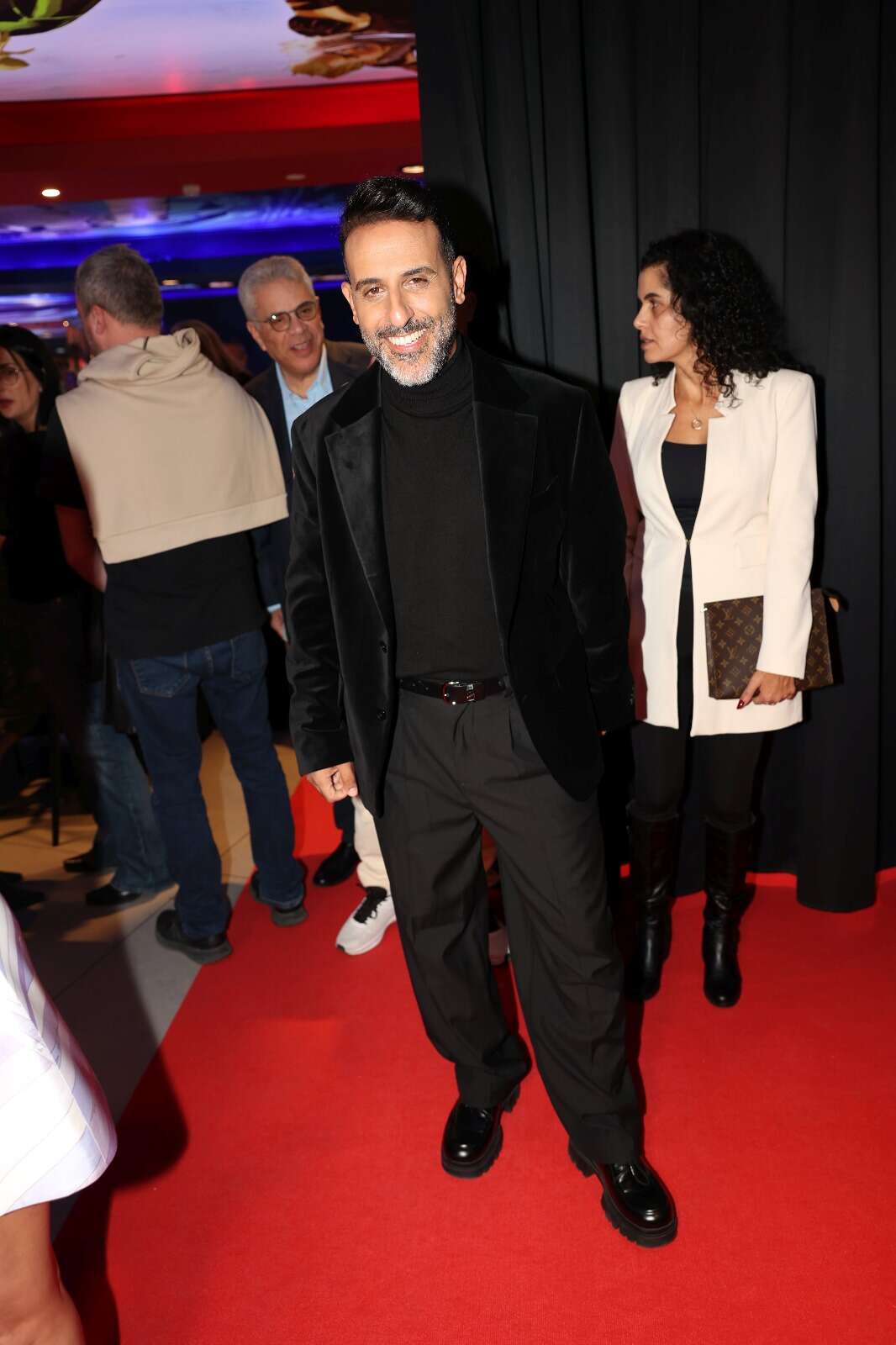 דודו אהרון מפתיע לטובה ונראה מצוין. הלוק השחור כולו יושב עליו בול, והבחירה במקטורן קטיפה עם גולף מעניקה שילוב מדויק של אלגנטיות מודרנית וקלאסיקה גברית. הגזרה מחמיאה, הנעליים המבריקות מוסיפות טוויסט מעודכן, והכול מרגיש נקי, מחושב ונכון.