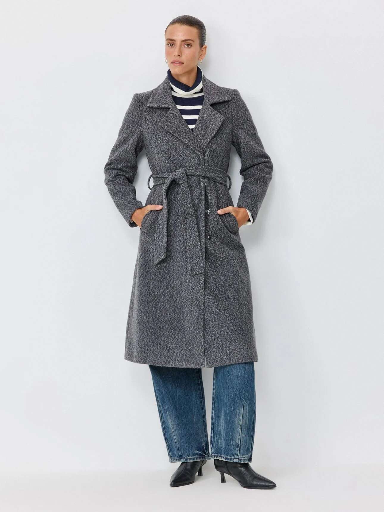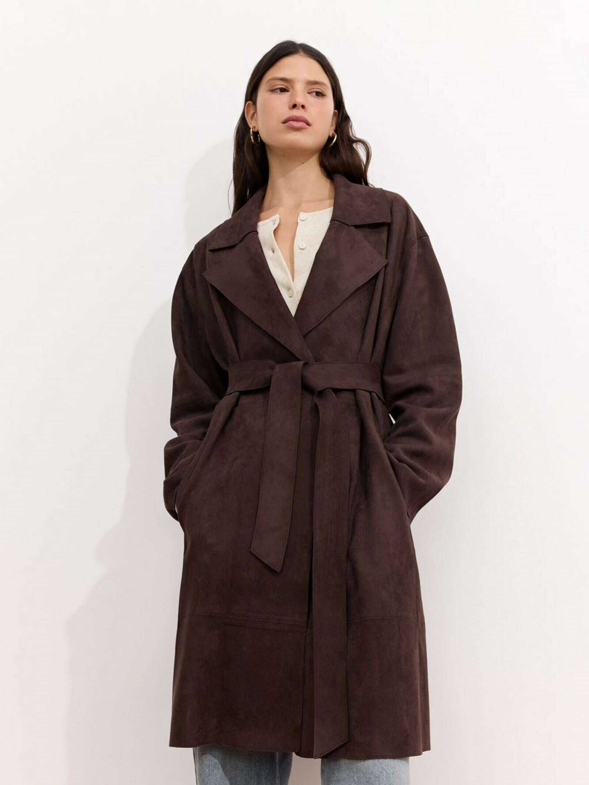 לצד כל אלה, יש גם מעילים ארוכים ורכים מבד סריג עבה או מצמר, המיועדים לימים קרים אך לא לחים. הם בדרך כלל גדולים ורחבים, עם כיסים גדולים וצללית מעט אוברסייז שמאפשרת ללבוש שכבות מתחתיהם. זו בחירה שמתאימה בדיוק למי שמעדיפה חיבוק אופנתי על פני קשיחות.