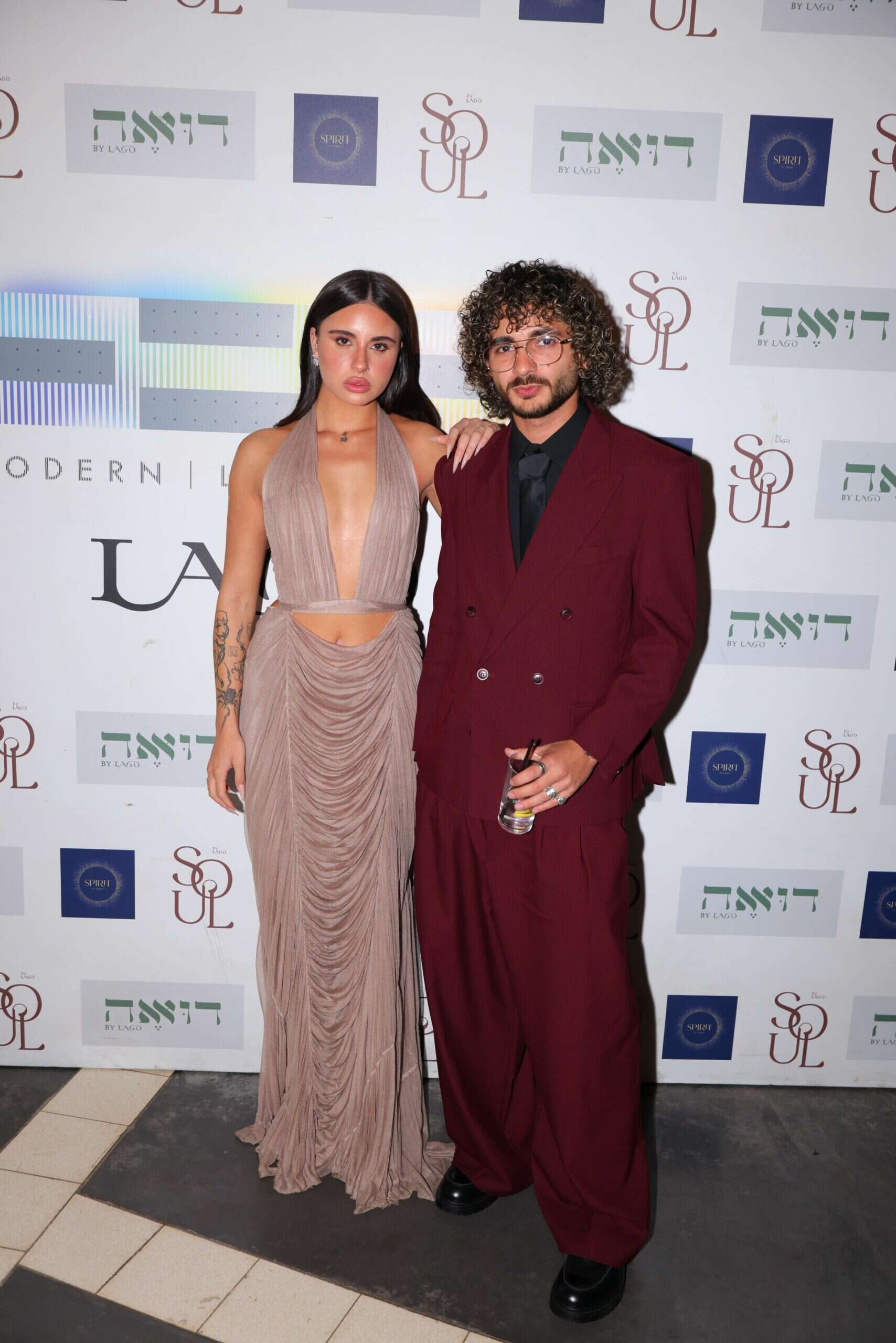 מצטייני האירוע הם צמד הזמרים נס וסטילה, נס בשמלה מדויקת שפשוט גונבת את כל הפוקוס. הגזרה הדרמטית עם המפתח העמוק מקדימה והדרייפינג המדויק לאורך הגוף יוצרים מראה פסלי, אלגנטי ונועז, כזה שרואים בדרך כלל על שטיחים אדומים מעבר לים. הצבע הנייטרלי חולי עובד מעולה עם עורה ועם האיפור הזוהר, והשיער החלק והמדויק משלים את הלוק באופן מושלם. סטילה, מצדו, נראה חד ומדויק בחליפה בורדו טרנדית שמצליחה לשלב בין מודרניות לאלגנטיות. הגזרה הרחבה והמשוחררת של המכנסיים, יחד עם הז'קט הדו-שכבתי והעניבה השחורה, יוצרים הופעה מלאה סטייל ואישיות.