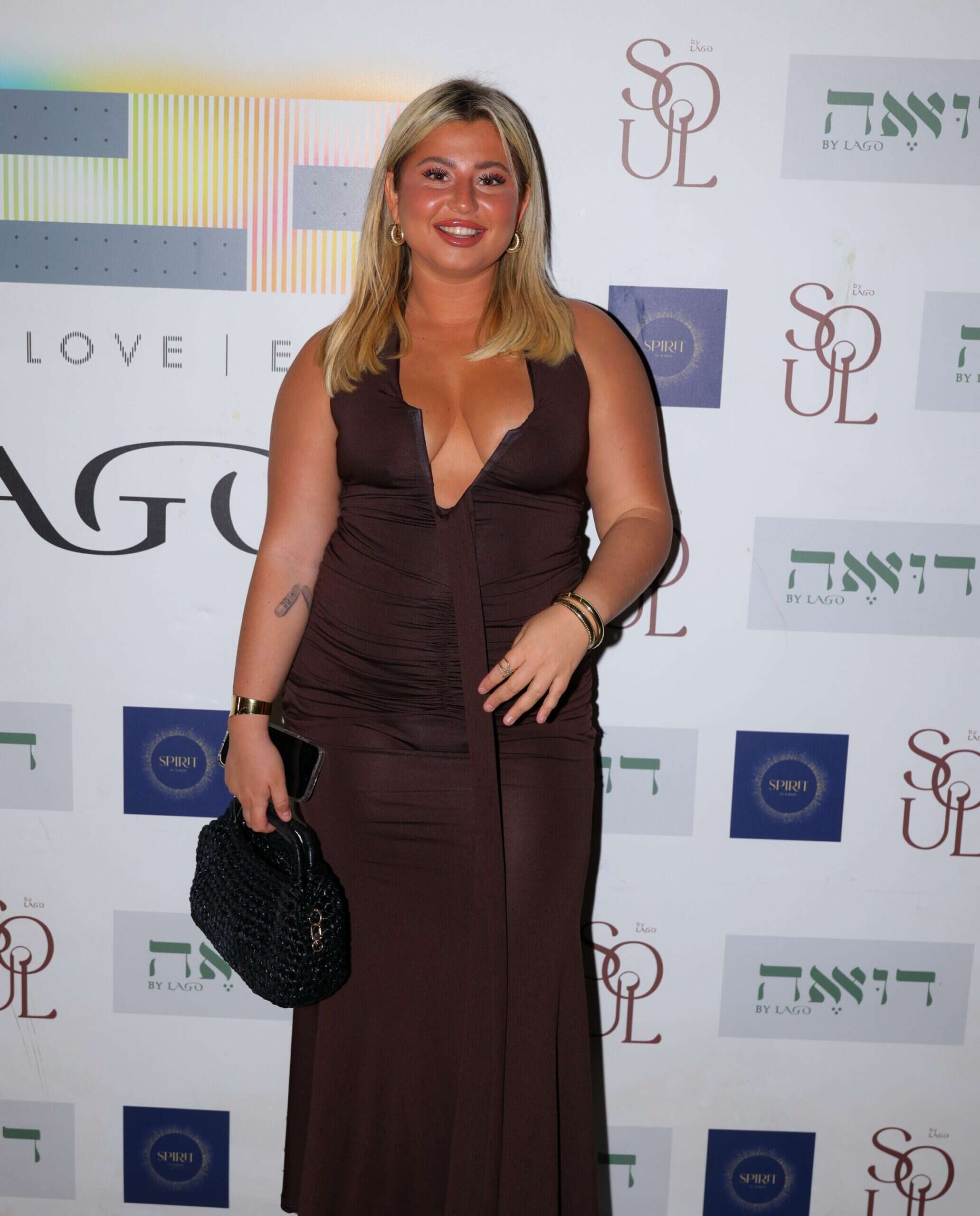 שלקה הגיעה בשמלה בצבע חום שוקולדי טרנדי, צבע שממש מחמיא לה ונותן חמימות וזוהר. הבחירה בגזרה היא נכונה, יחד עם זאת, הבד הדקיק והדרפינג המרכזי מושכים הרבה תשומת לב לאזור אחד ויוצרים תחושה מעט עמוסה, והנעליים הכבדות יחד עם התיק השחור פחות משתלבים עם הקו האלגנטי של השמלה, נעליים בצבע ניוד ותיק מנצנץ היו מקפיצים את הלוק.