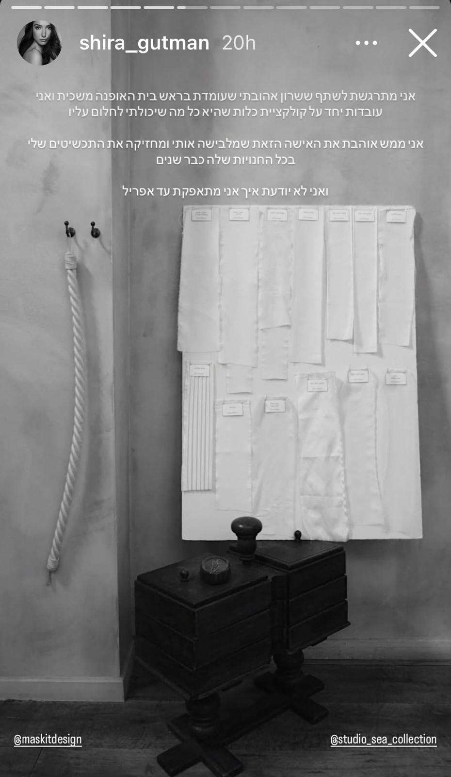 בסטורי לאחר מכן, שיתפה גוטמן-קורן את הבשורה המרגשת על קולקציית הכלות וכתבה: "אני מתרגשת לשתף ששרון אהובתי (שרון טל) שעומדת בראש בית האופנה משכית ואני עובדות יחד על קולקציית כלות שהיא כל מה שיכולתי לחלום עליו. אני ממש אוהבת את האישה הזאת שמלבישה אותי ומחזיקה את התכשיטים שלי בחנויות שלה כבר שנים".