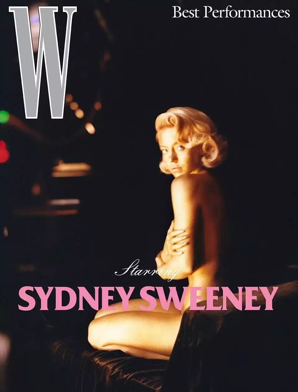 השחקנית סידני סוויני עולה שוב לכותרות, בעקבות הפקת אופנה חדשה למגזין W שפרסם את גיליון "ההופעות הטובות ביותר" השנתי שלו. על שער המגזין היא נראתה צבועה בצבע גוף זהוב ובעירום מלא, וענדה רק שרשרת של Chopard, עם תספורת בלונדינית בסגנון פינאפ, שהזכירה את מרילין מונרו.