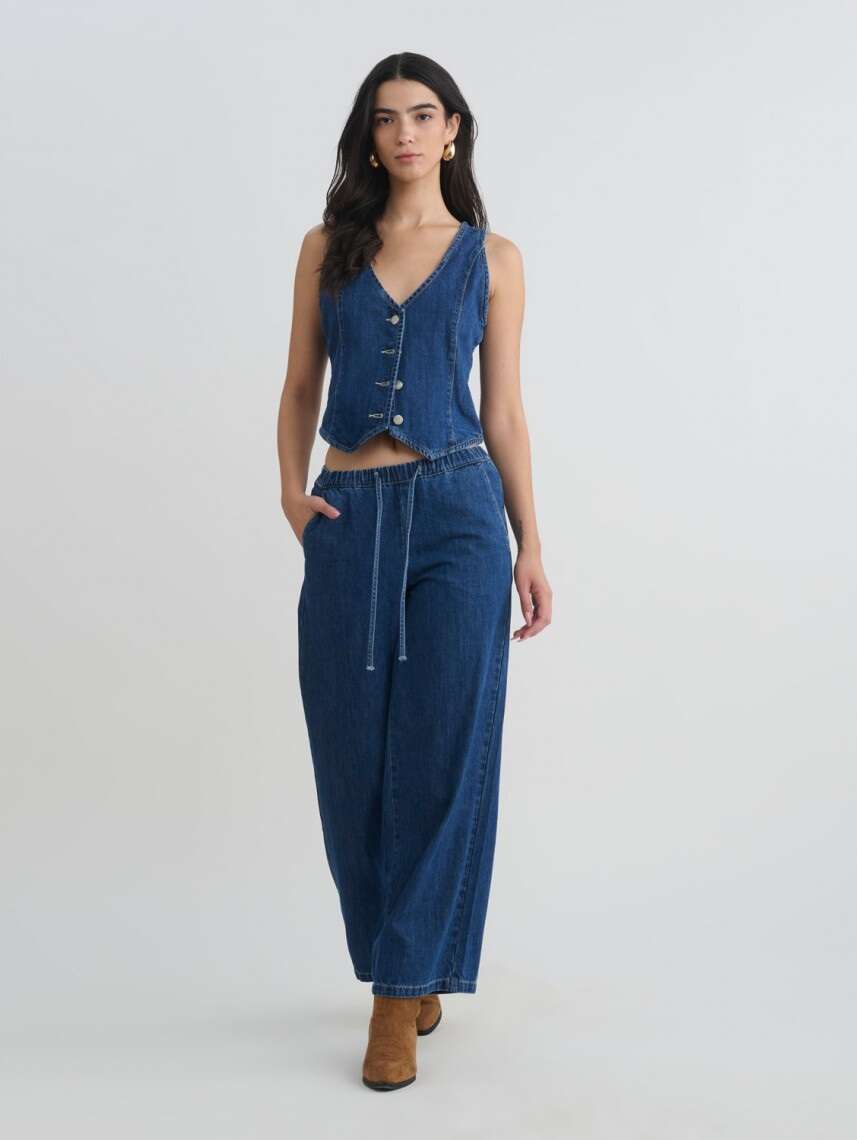 כדי לאמץ את הטרנד בלי להרגיש מחופשת, חשוב לשמור על איזון. מכנסי בלון עובדים הכי טוב כשנותנים להם מקום לנשום ולא מעמיסים מסביב. בחלק העליון כדאי לבחור פריטים נקיים יחסית: גופייה צמודה, טופ חלק, חולצת טי איכותית או סריג דק שנכנס לתוך המכנסיים. גם וסט קצר, ז'קט קרופ או מעיל שמסתיים מעל קו האגן יעבדו מצוין ויחזקו את הפרופורציות. מי שמעדיפה מראה רך יותר יכולה ללכת על חולצה רחבה - אבל אז חשוב להשאיר קו מותן ברור, בין אם דרך קשירה, חגורה או הכנסת החולצה למכנסיים באופן חלקי.