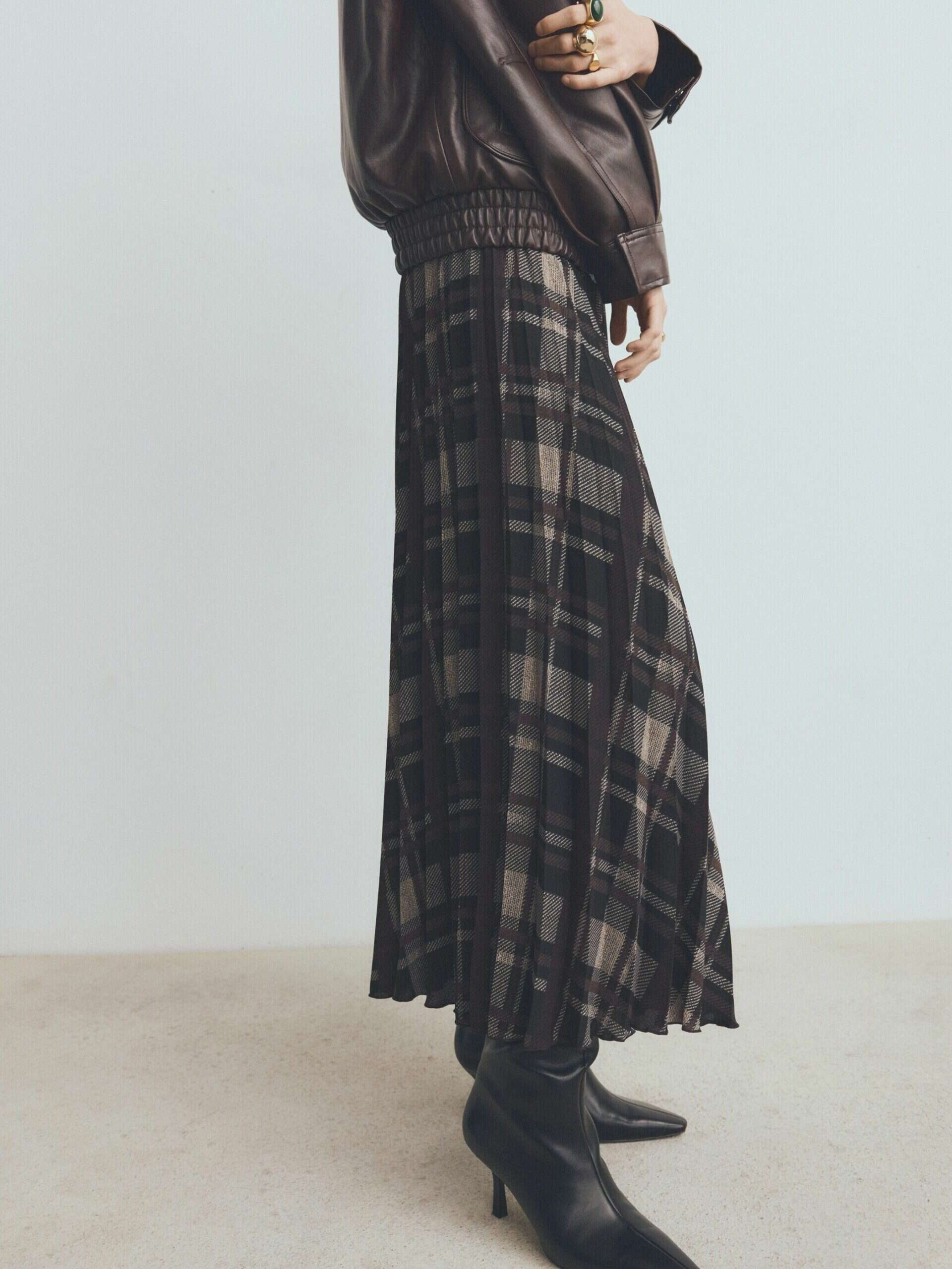 ונסיים עם שני פריטים הכי קלאסיים לסוף החורף. אל רשת מנגו הספרדית הגיעה הקולקציה החדשה ומצאנו בה חצאית בהדפס משובץ, למראה אופנתי עם טאץ' אירופאי.