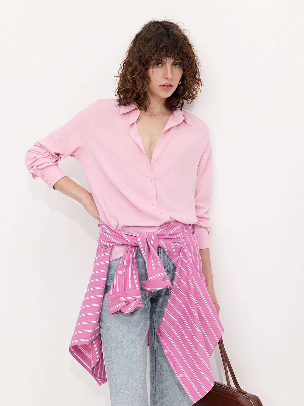 זה לא הוורוד המתקתק של פעם, אלא ורוד מפוכח, כזה שמכיר במציאות, אבל בוחר להכניס אליה רוך, אור ואפילו תקווה. חולצה ורודה רכה או טופ עדין יכולים לשנות את כל האווירה.