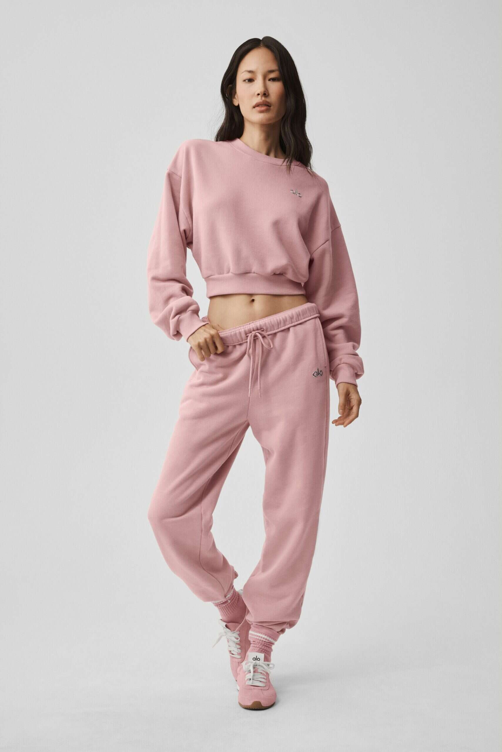 alo yoga vintage pink. מחיר מכנסיים: 490 שקלים, מחיר סווטשירט: 450 שקלים / יח"צ